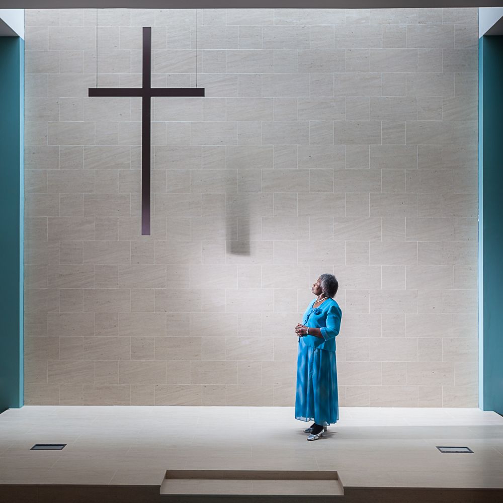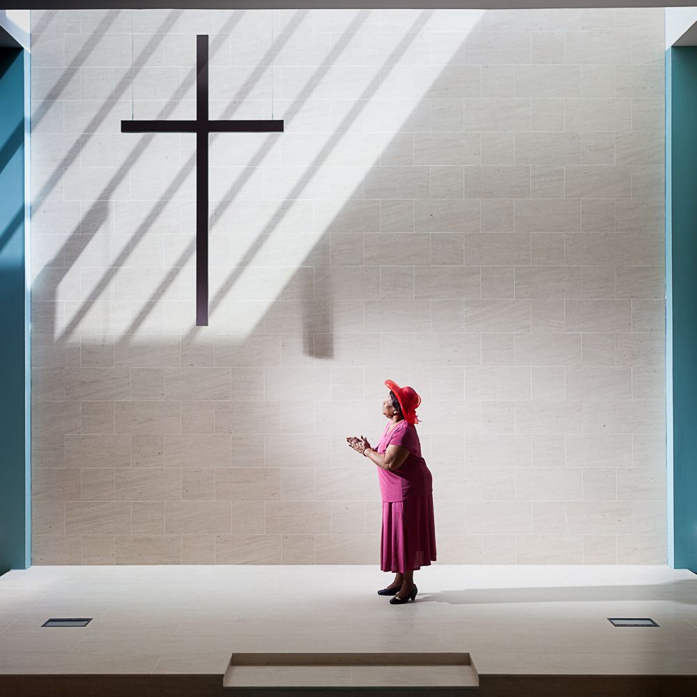 The portraits, taken in the third Methodist church built on this site, reflect a quiet moment of faith through gestures of prayer and devotion that express the calm, joy or consolation experienced in the place of worship.