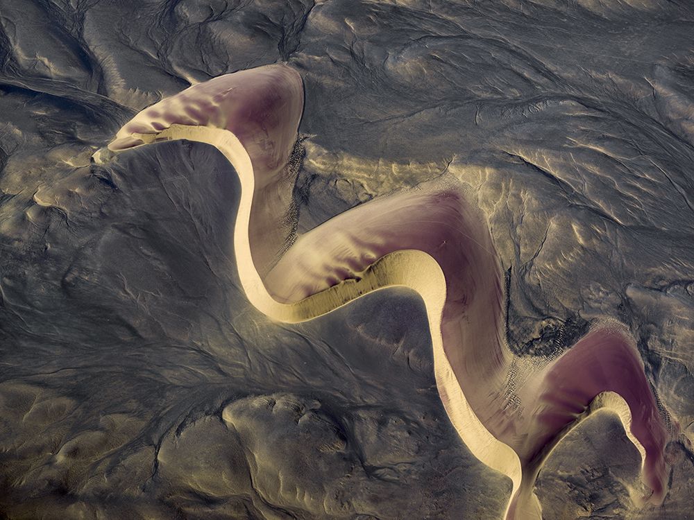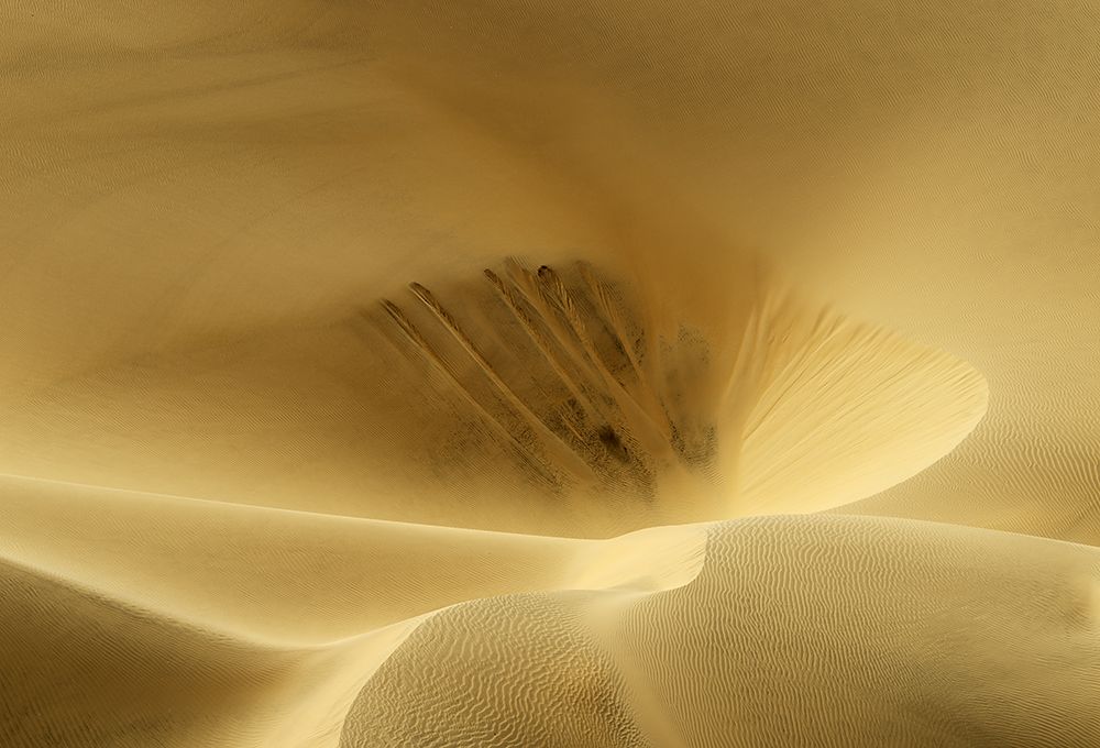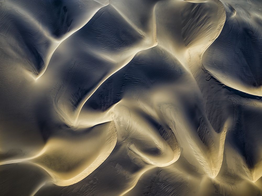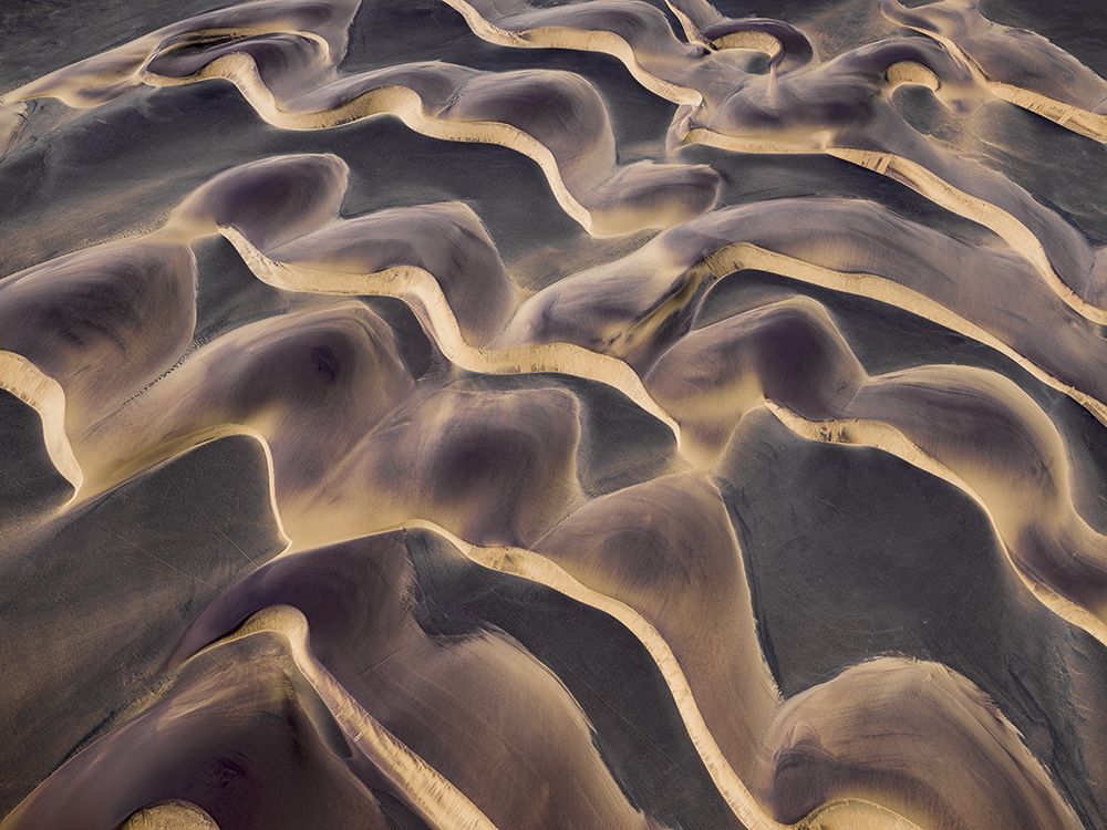 This photograph was made from a helicopter flying over the sand dunes in the Namib Desert.