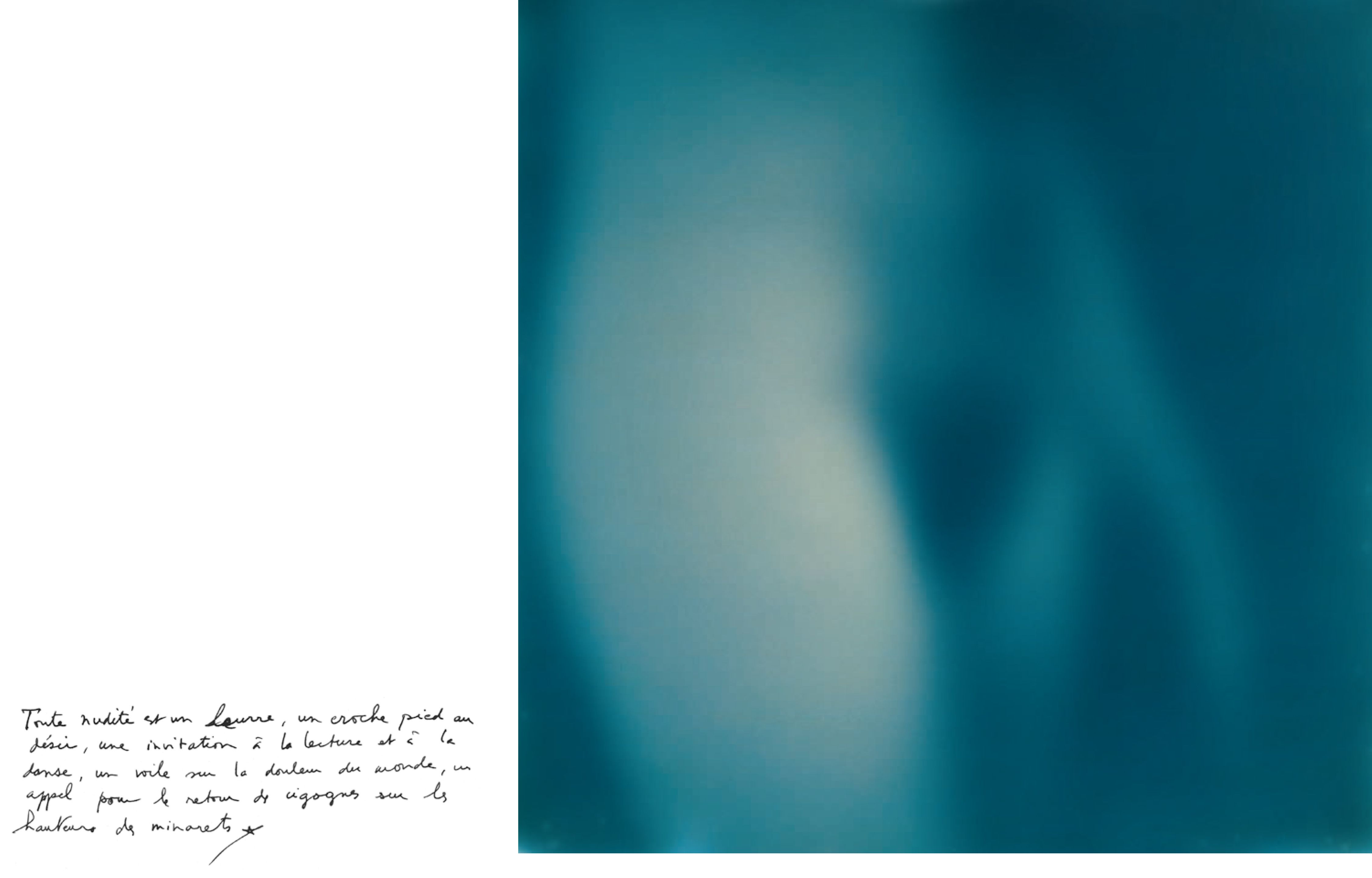 With a desire to stay authentic and a wish to immortalize fleeting moments of grace with all the beauty of their imperfection, Thomas Dhellemmes favours Polaroid. 'Jour Bleu', a series of Polaroids captured across four continents between 1983 and 2017, is an enigmatic, sincere and abstract photographic memoir. A spontaneous and intimate journey into the life of the artist. In the book, each polaroid is accompanied by a text written by award-winning author Tahar Ben Jalloun (prix Goncourt). Jalloun takes inspiration from Dhellemmes atmospheric and dream-like Polaroids for his accompanying verse