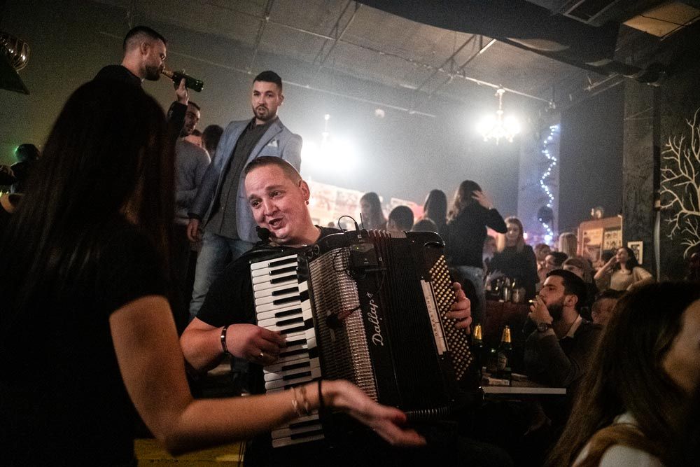 By overwriting the memory through those historical names that have made this country great, Bosnia Erzegovina always represents the idea of the union of the great Jugoslavia. I've been going for years since 1997, telling at different times about the ugliness of war and its meaning, and after 25 years from the end of that terrible period, I realized the only argument belonging to all was their Jugoslavian identity.Folk/popular songs from the 70s, up to the more contemporary ones, are sung in the smoky places of a Sarajevo that has been reconstructed through the unique identity.