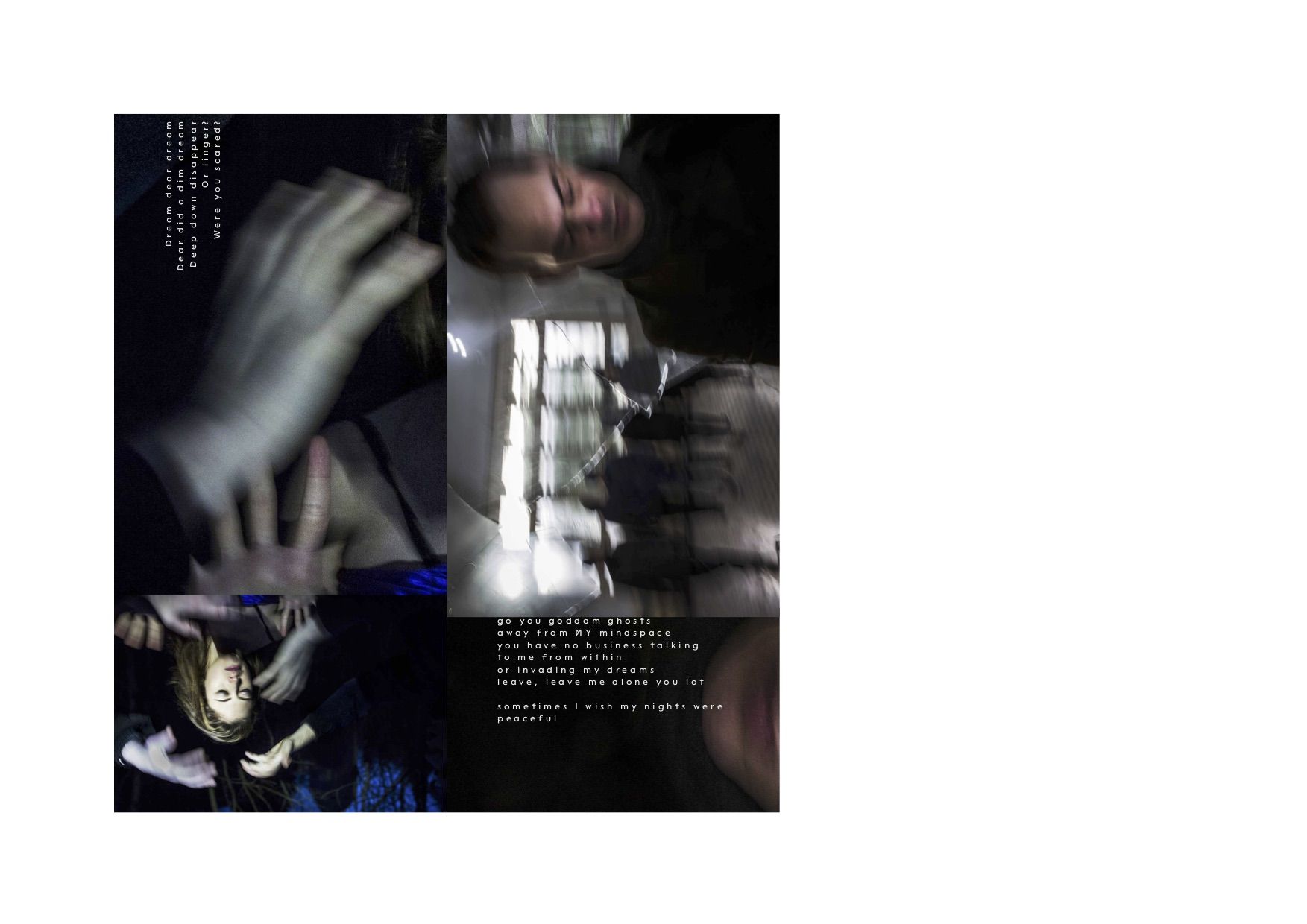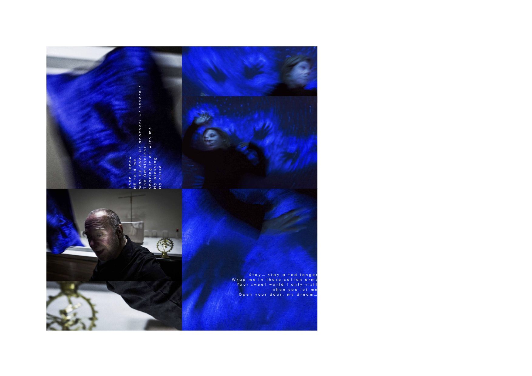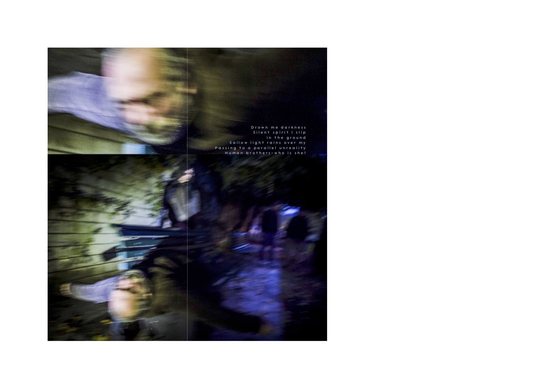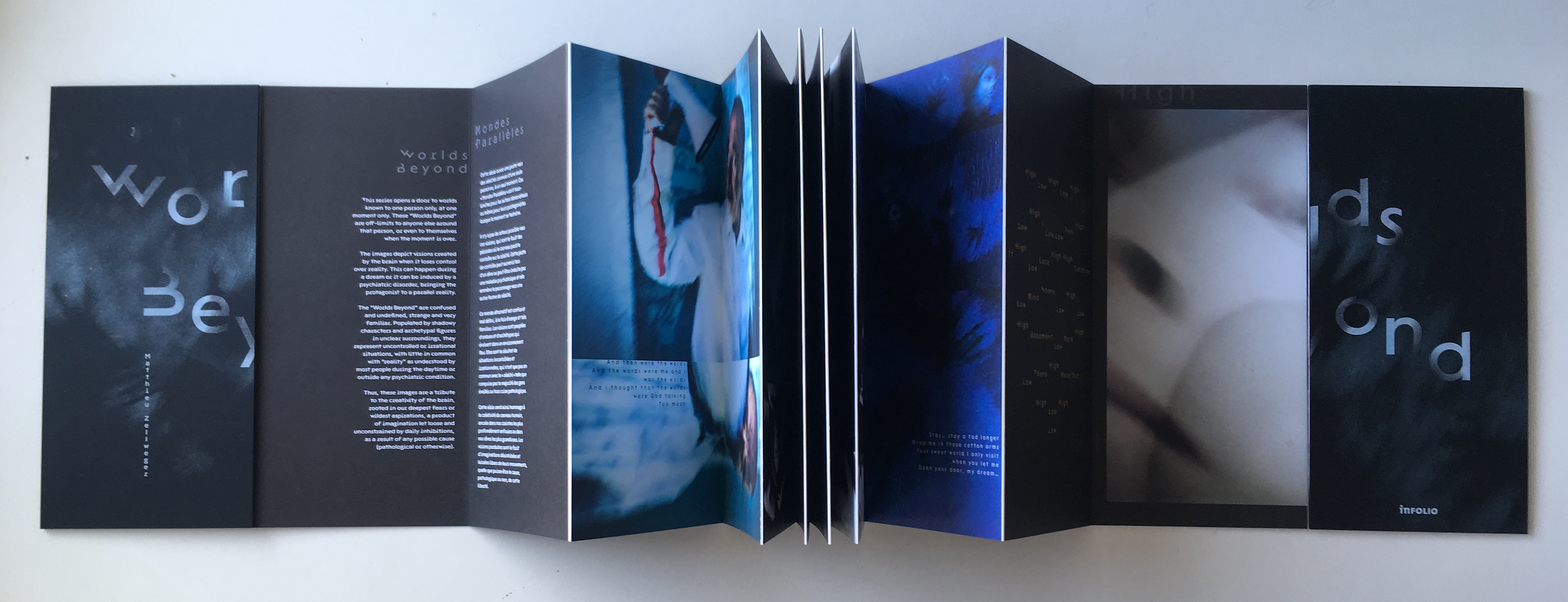 “Worlds Beyond” questions the concept of “reality”. It opens a door to worlds known to one protagonist only, at one moment only. These parallel realities are off-limits to anyone else, or even to the protagonist when the moment is over. There is no way back and nobody can control the door to these visions created by the brain when it loses control. This can happen during a dream or it can be induced by a psychiatric disorder.