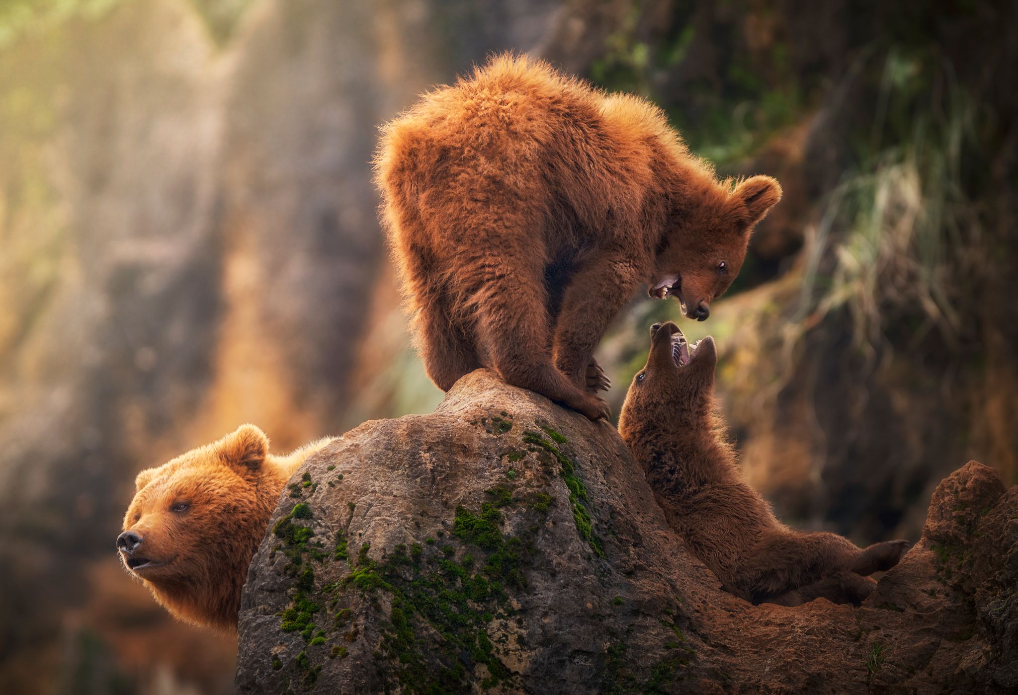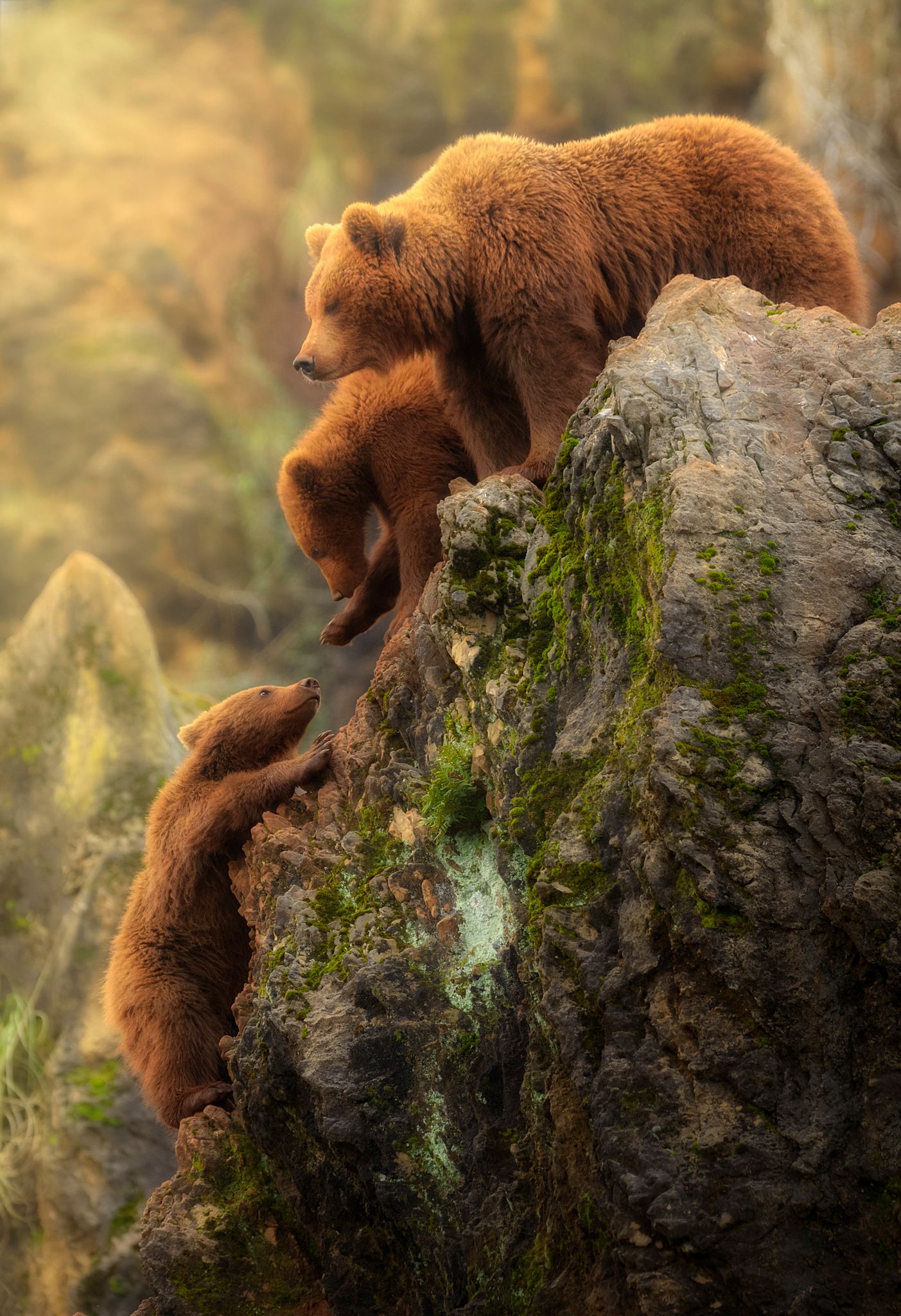 When I photograph animals, I think of the artistic and sentimental sense, perhaps more than in the wild sense many times. In this series I want to show a family of brown bears in their most human side, wrapped in a story atmosphere, as if the situations photographed were more typical of an animated film. These photographs were taken in Cantabria, Spain.