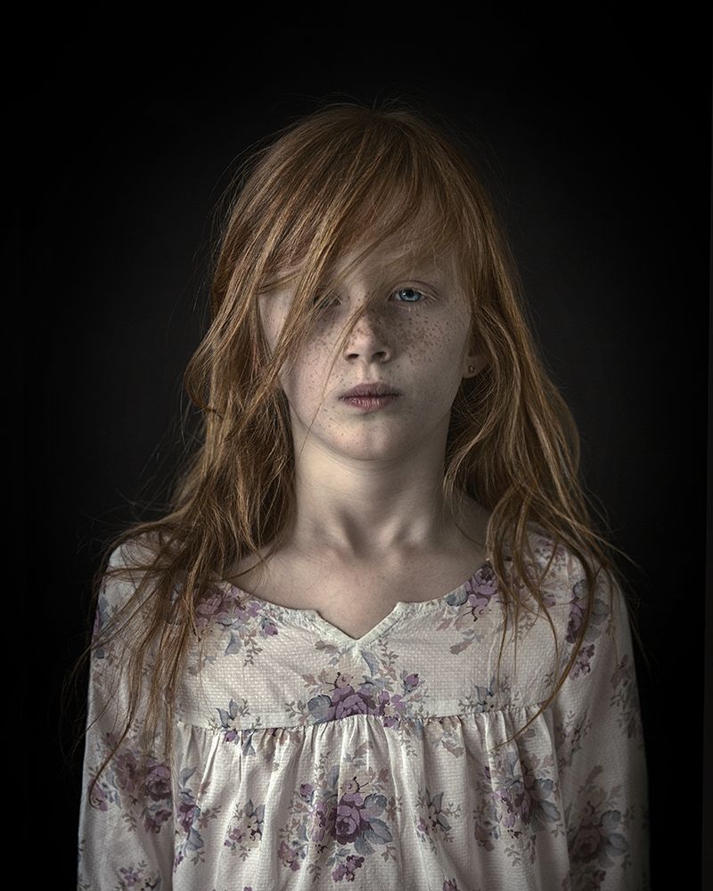 Red haired girl with wild hair