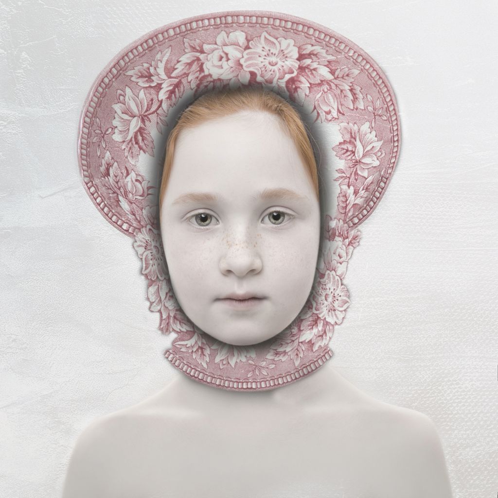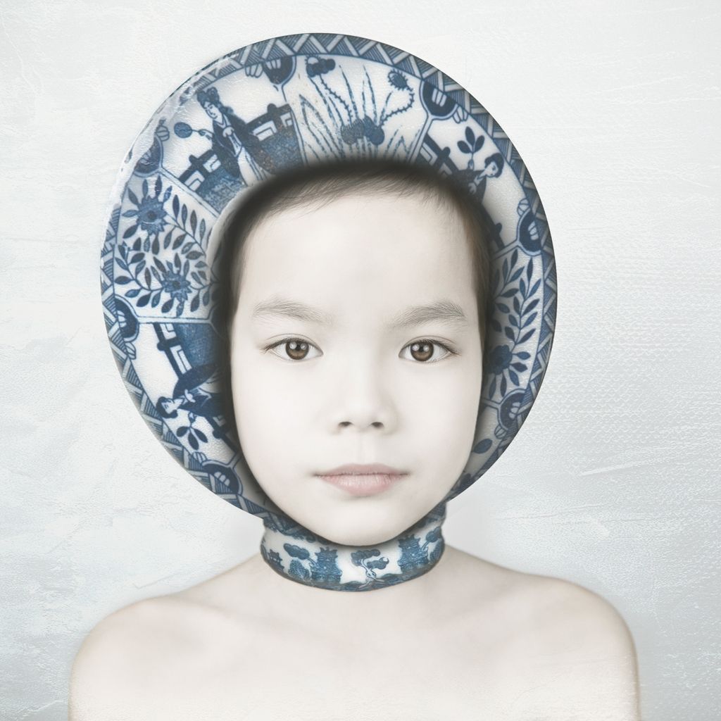 the photographer used to be a costume maker, the headpieces are handmade and digitally put together with the original piece of porcelain.