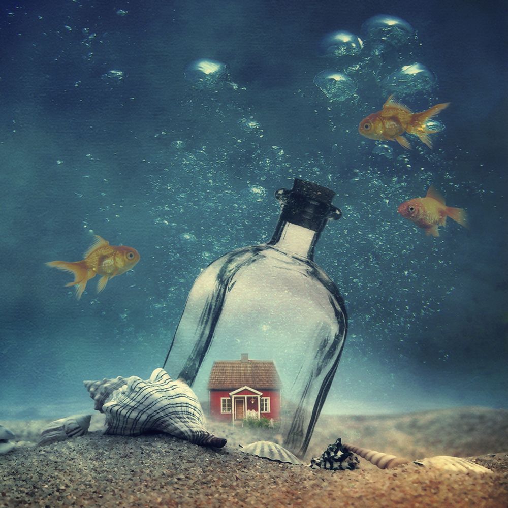 At the beggining, my usual body of work was in black and white, but few years ago I noticed that when I am down or sad, I cannot work with dark moods. As the way of escape, I created a colourful serie named "who sings, frigthens aways his fears".