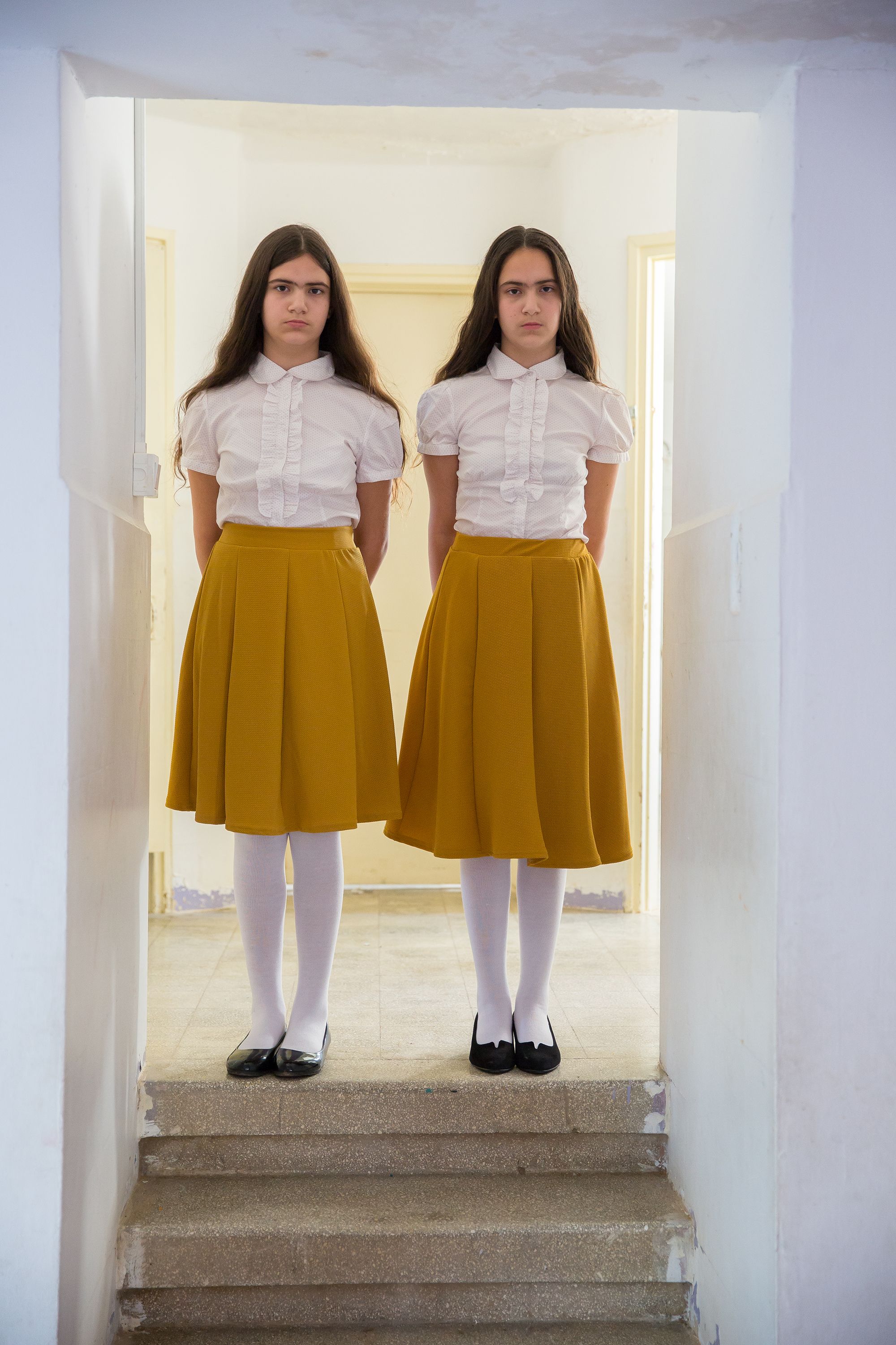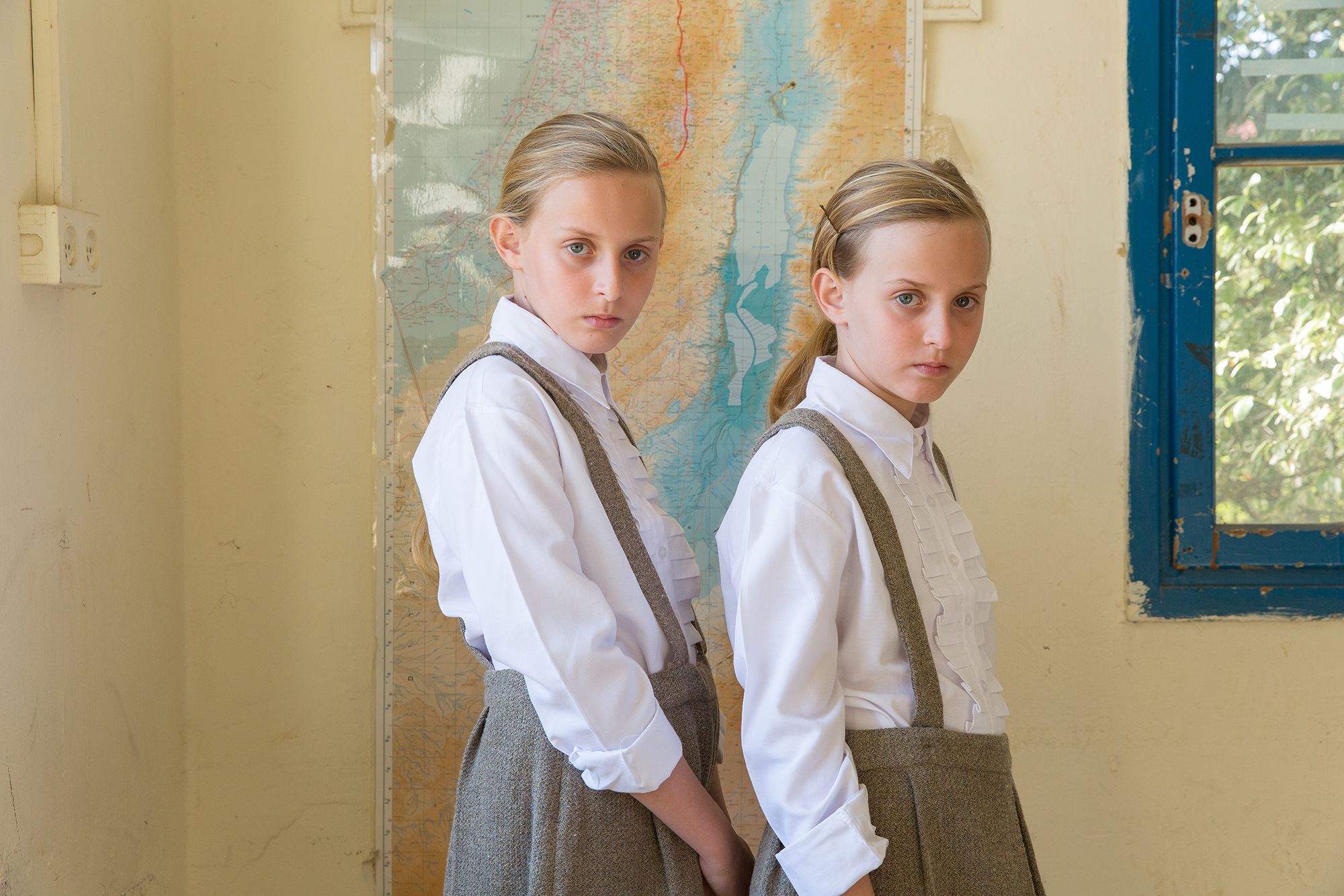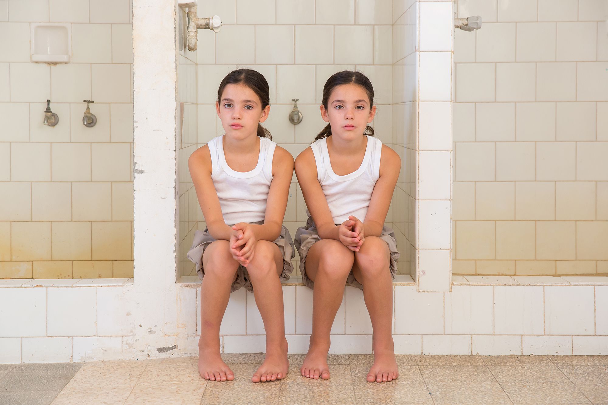 "Doubled" is a series focusing on photos of identical twins portraits and historical places in israel made over several years. The choice of a double "object", dressed uniformly and set in institutional spaces, engages with the issue of blurring and erasing individual identity by fusing the figures. The series pursues, as it were, a nostalgic, vague childhood memory of a past that did not necessarily exist. This longing is infused with critical questions about past and present. The public spaces presented in the series seem to have frozen in time and about to disappear.