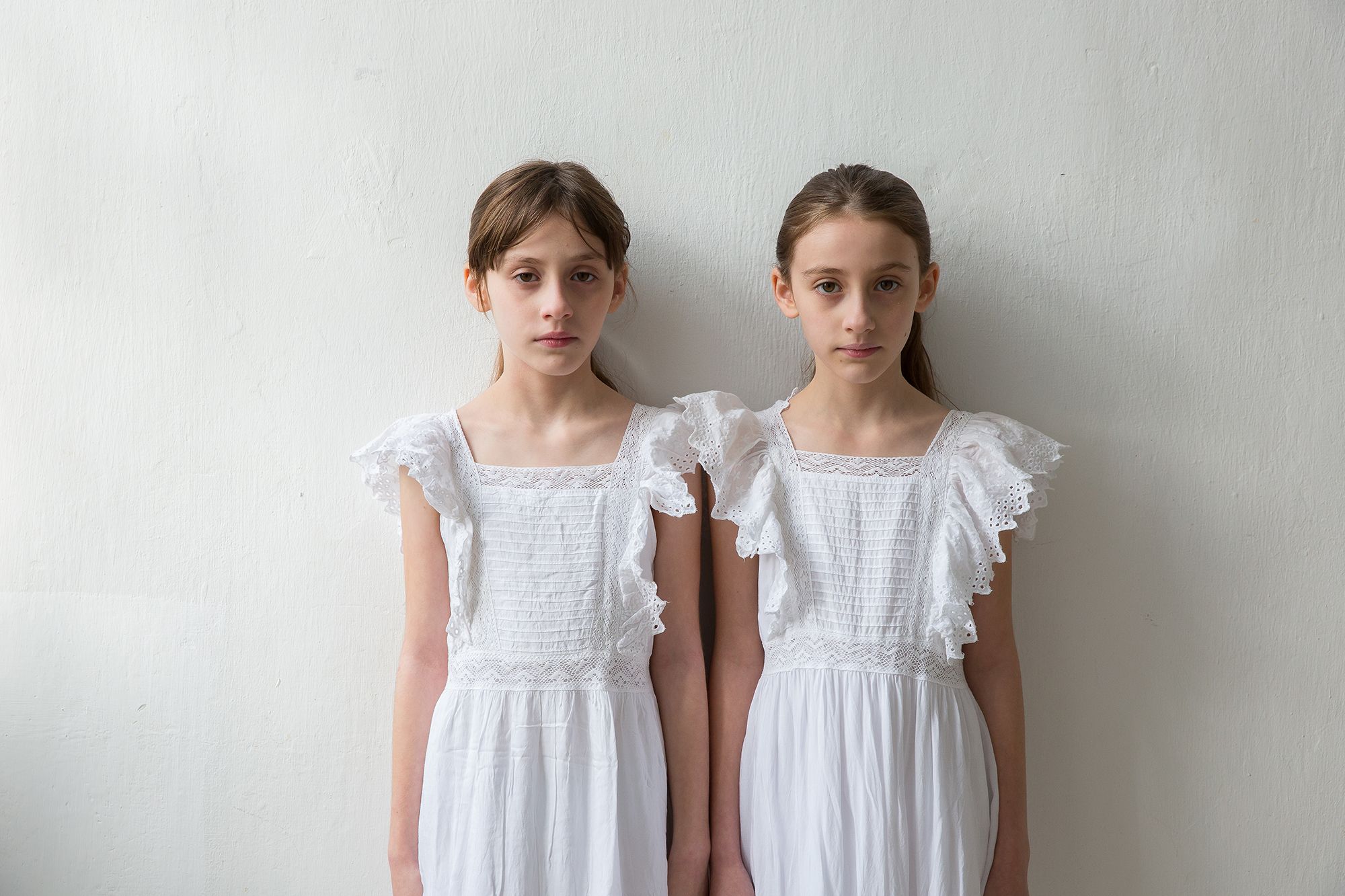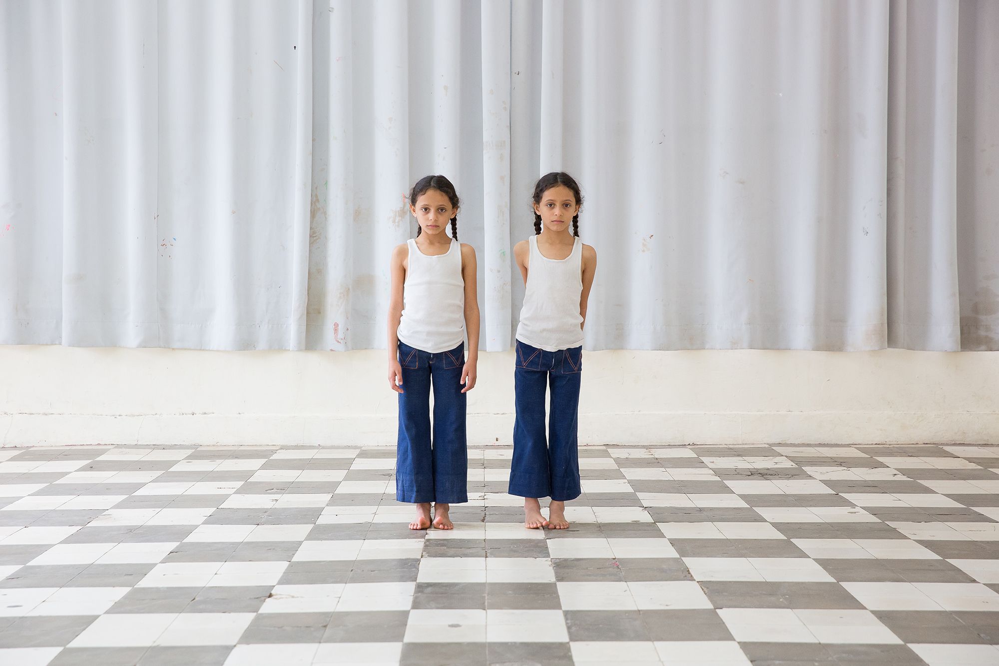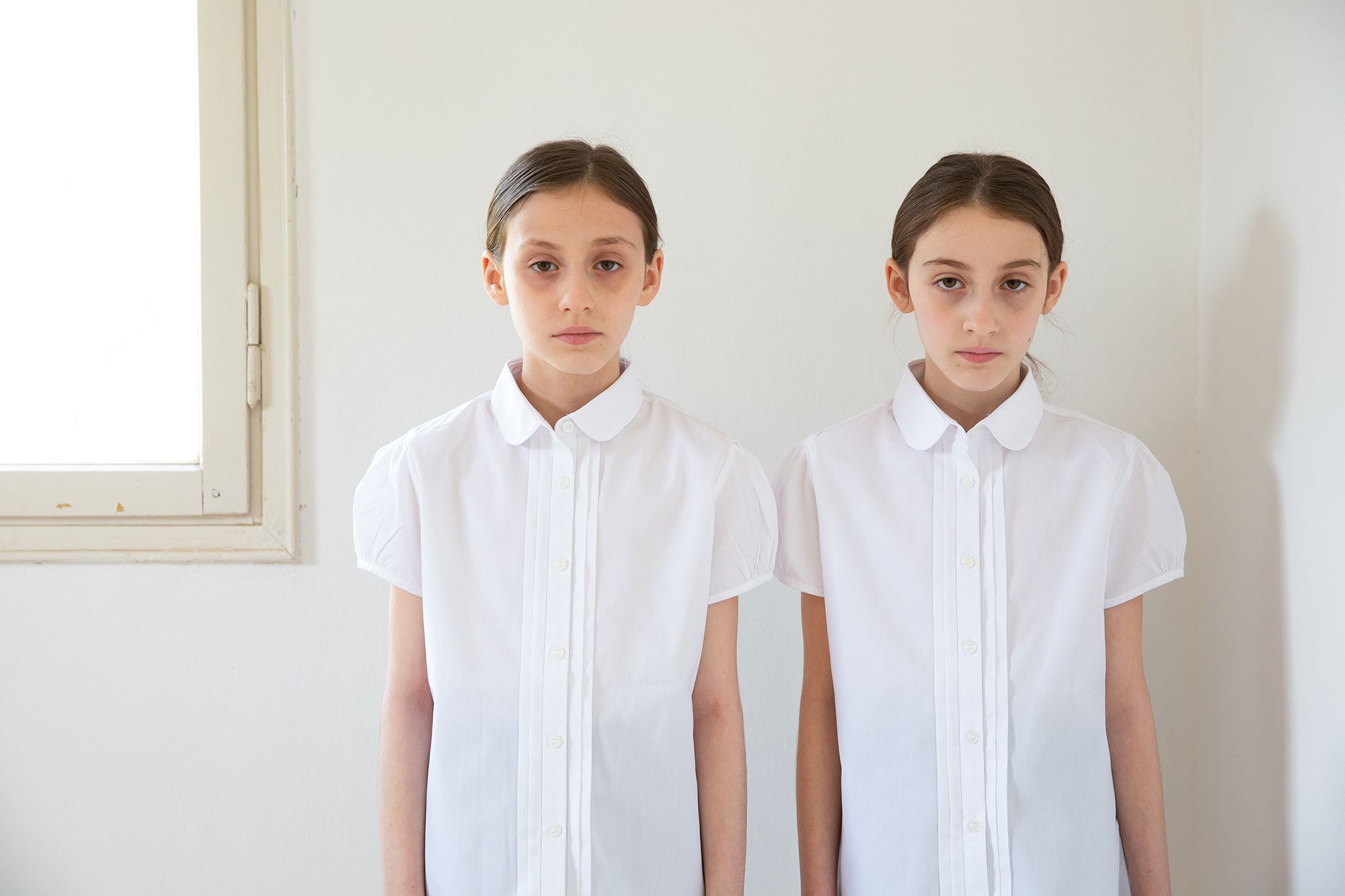 "Doubled" is a series focusing on photos of identical twins portraits and historical places in israel made over several years. The choice of a double "object", dressed uniformly and set in institutional spaces, engages with the issue of blurring and erasing individual identity by fusing the figures. The series pursues, as it were, a nostalgic, vague childhood memory of a past that did not necessarily exist. This longing is infused with critical questions about past and present. The public spaces presented in the series seem to have frozen in time and about to disappear.