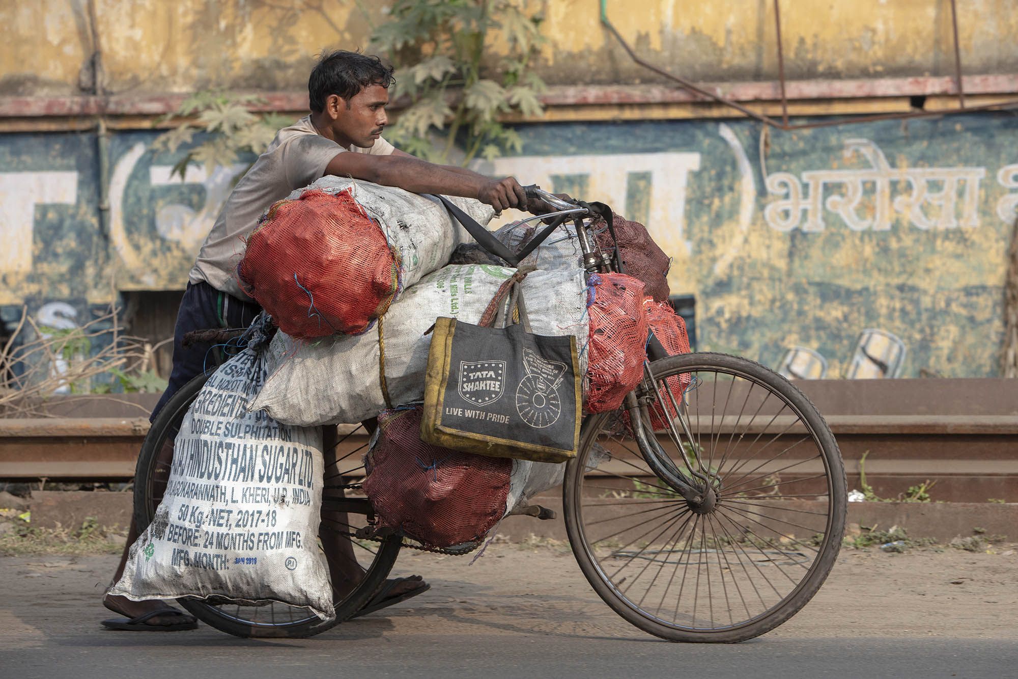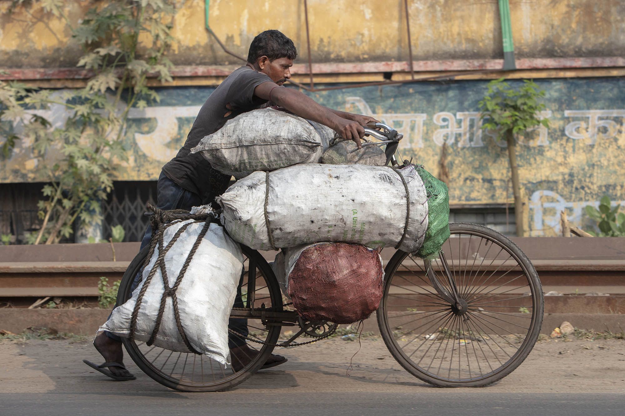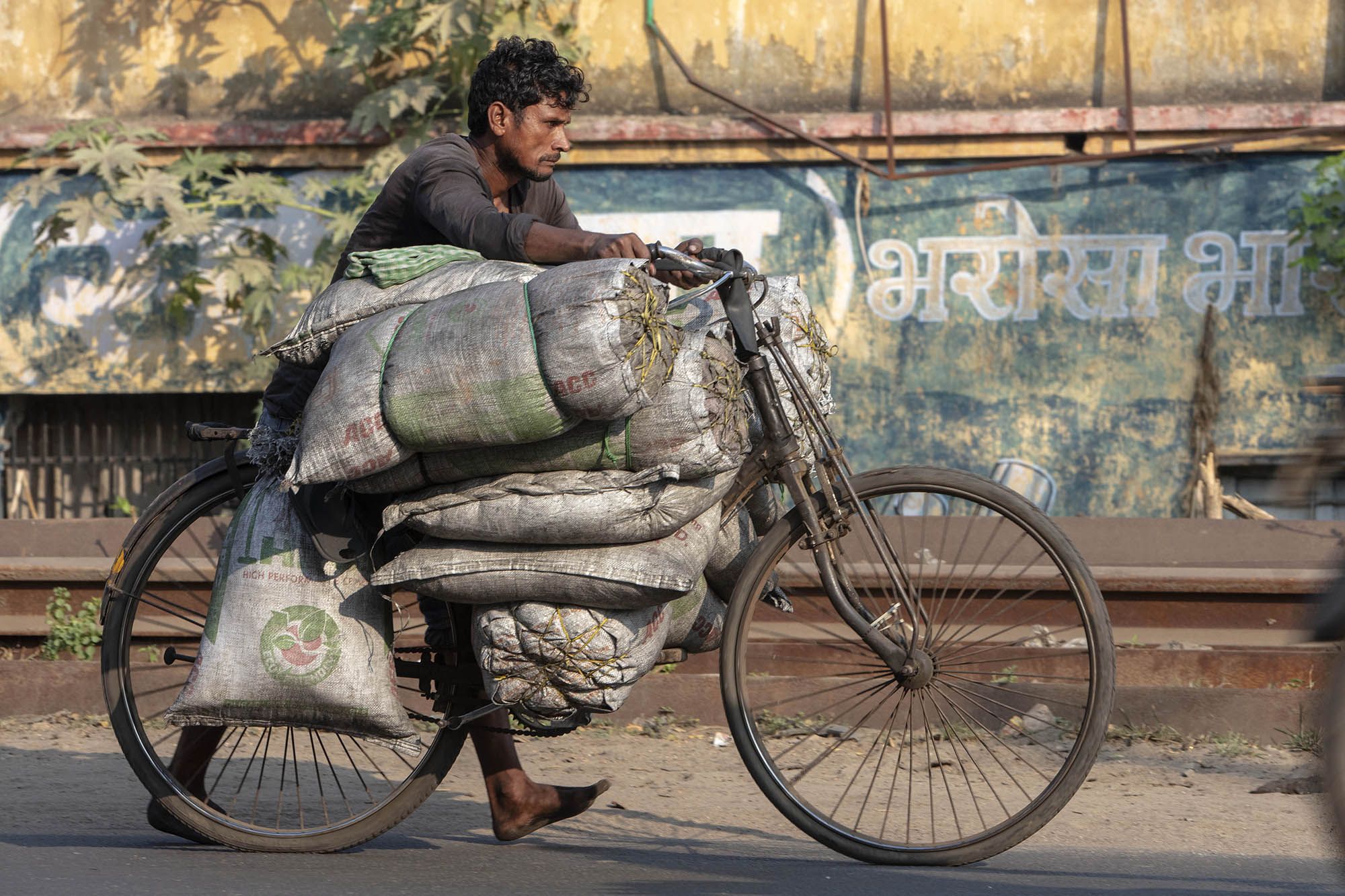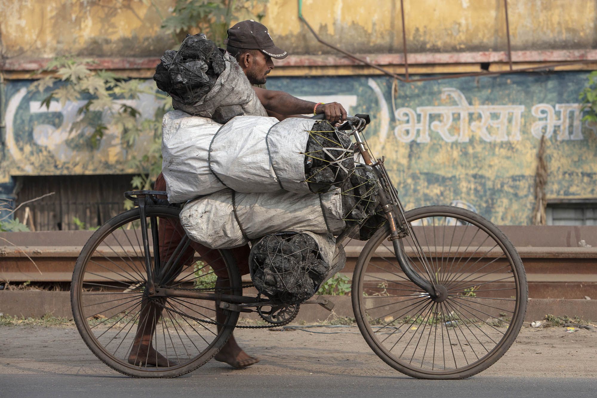 Every morning, men and boys are busy moving illegally scavenged coal in bags stacked on overloaded bicycles along the streets of Dhanbad. Dhanbad is the “coal capital” in Jharkhand state in India. These men and boys worry they will be stopped by police. If they are stopped, bribes work to pay off officials which eats in to their meager earnings. One bag of coal fetches between 150-160 rupees but the price is negotiable. They push their bicycles along, at times lucky enough to roll downhill, always looking over their shoulders to see if they are about to be stopped by police.