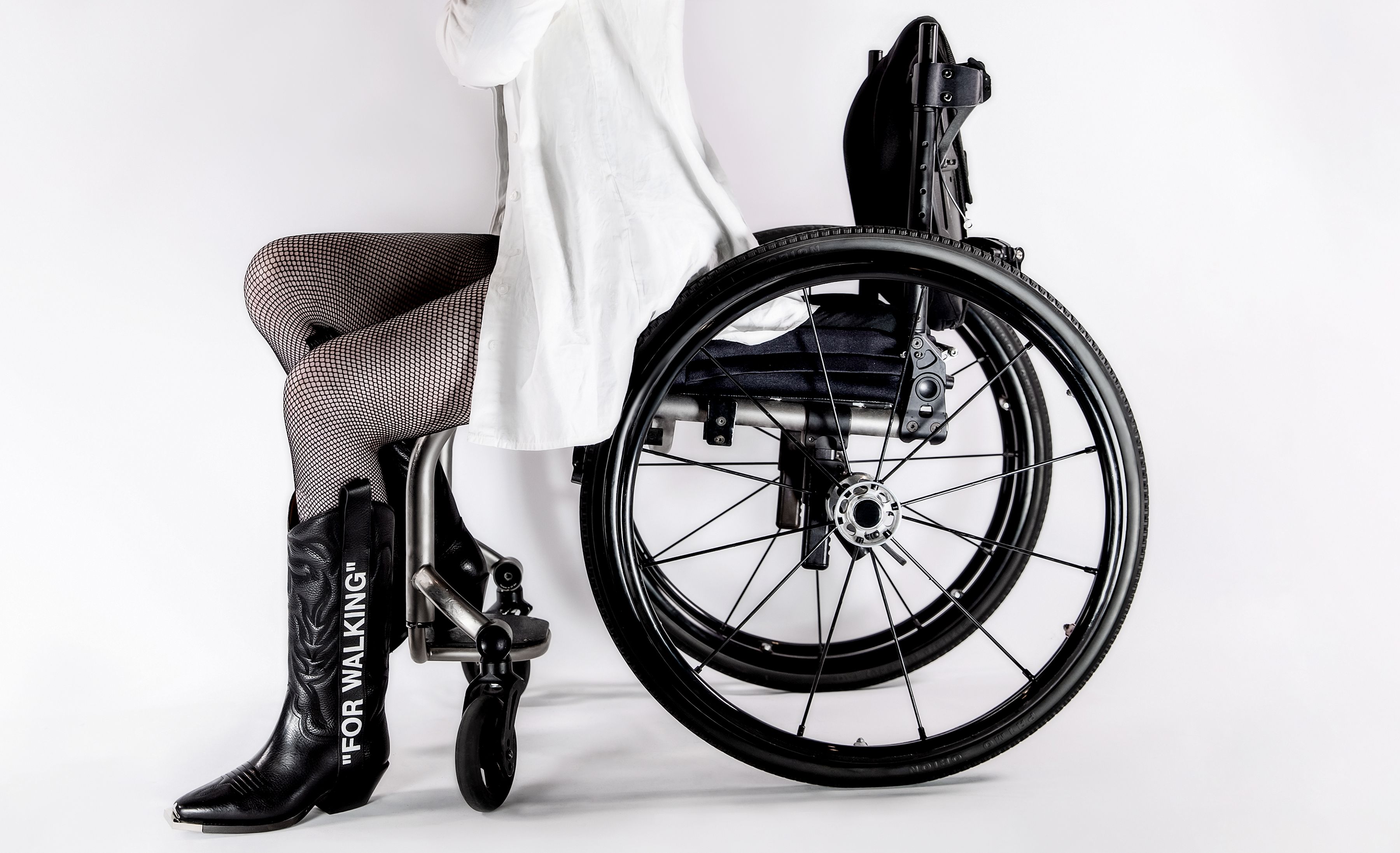 Living with a disability, you have two paths you can take, 1. develop a sense of humor or 2. let your physical disability develop into a mental disability. I chose option 1 and while, at times, my sense of humor is only funny to myself, it has helped me tremendously while being bound to a wheelchair. The first thing that attracted me to these boots was, of course, the writing on the side, but then I had an idea to create an image that encapsulated my sense of humor and also juxtaposed the limitations of being paralyzed with the job of shoes, which are "For Walking."