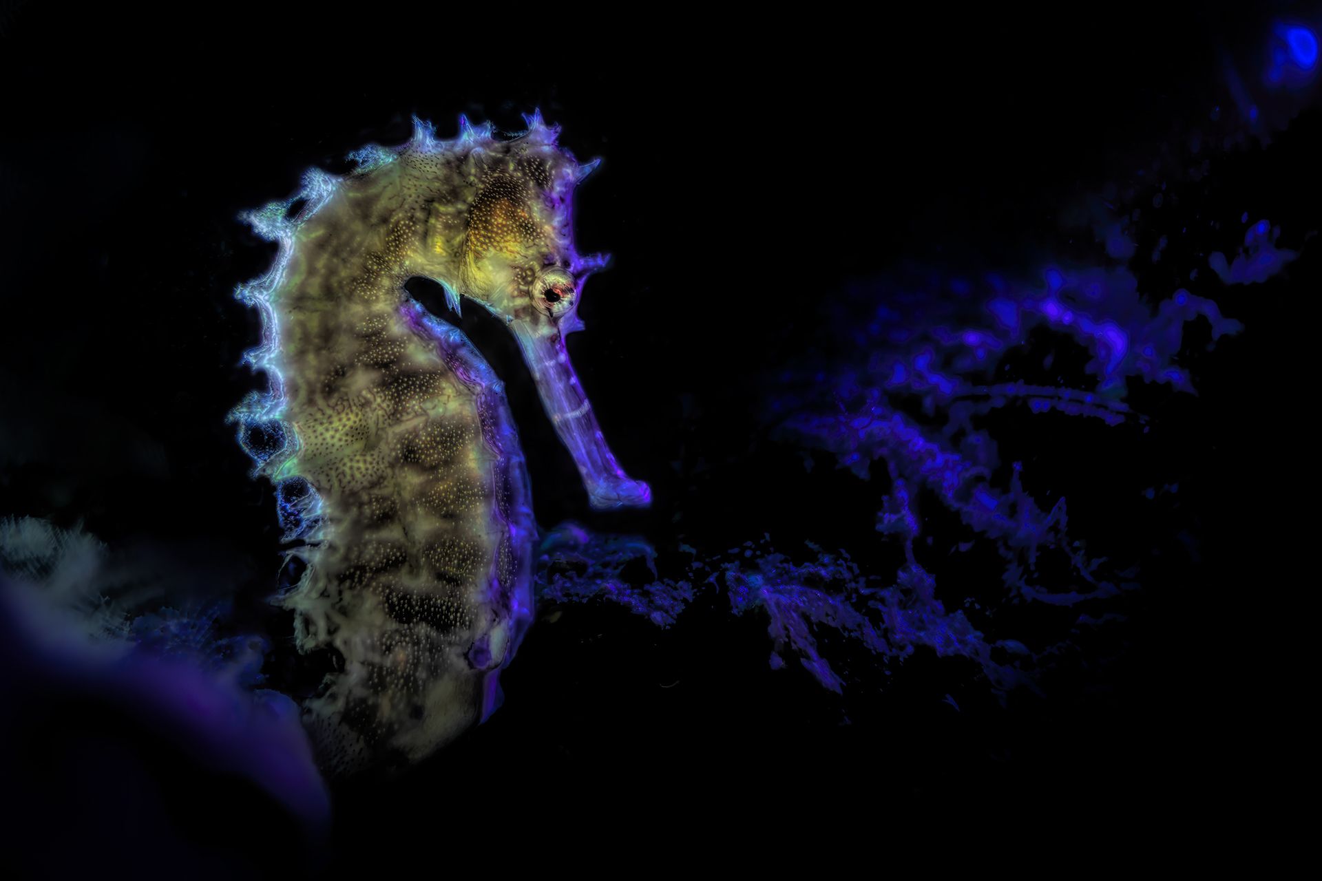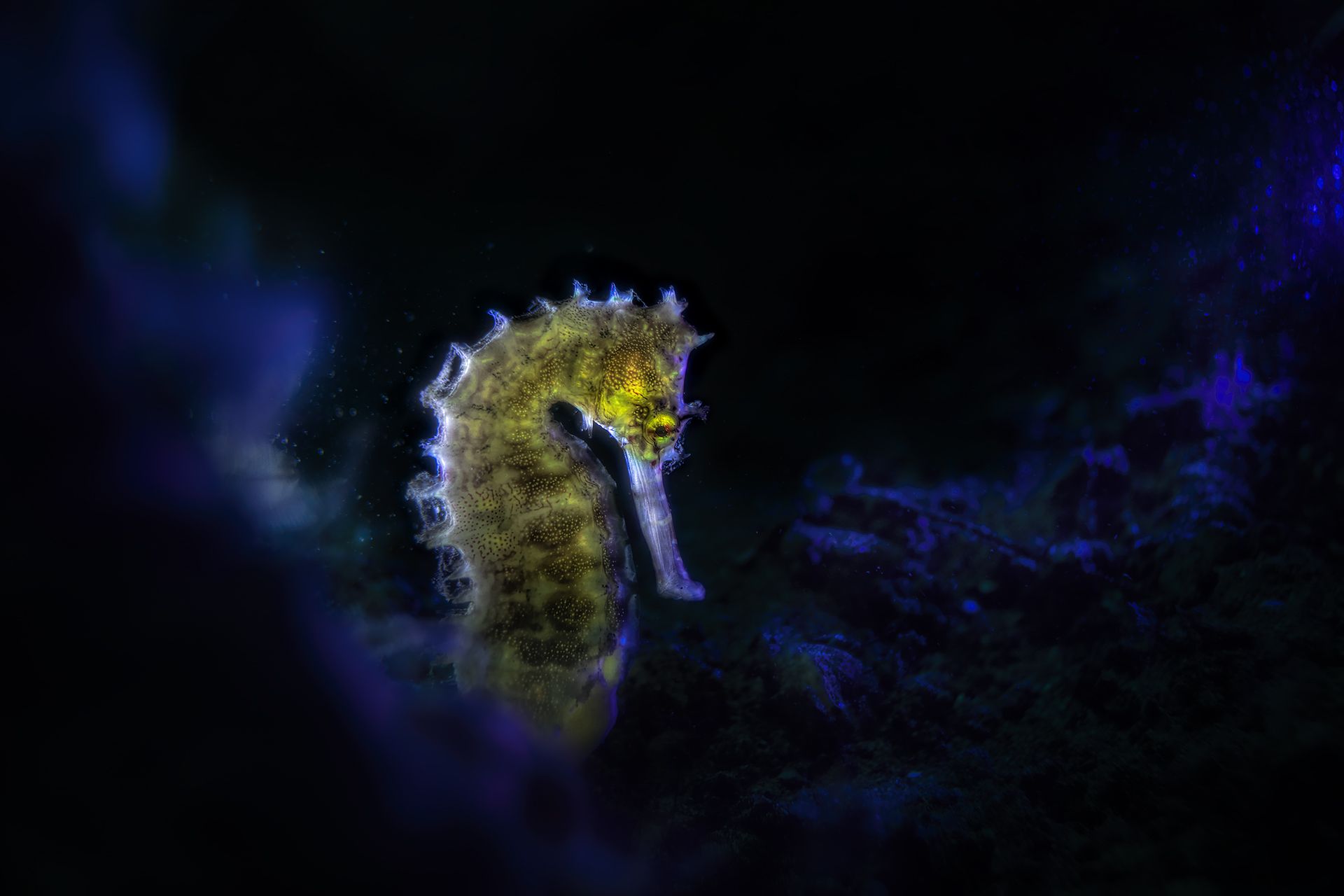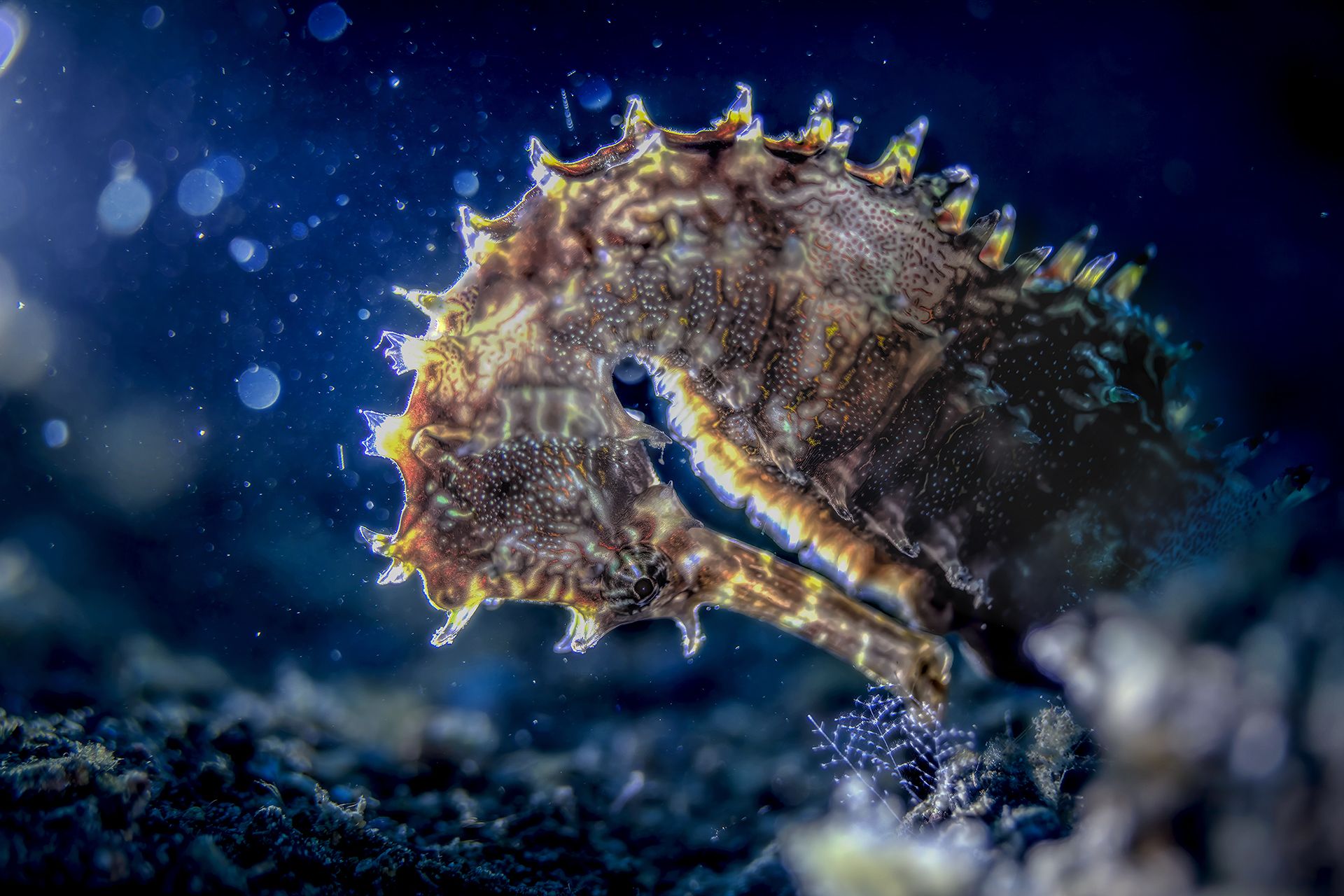 during a dive in Anilao to Jano Bay I take a click of this porcupine seahorse (hippocampus Hystrix) I play with light and this is a result