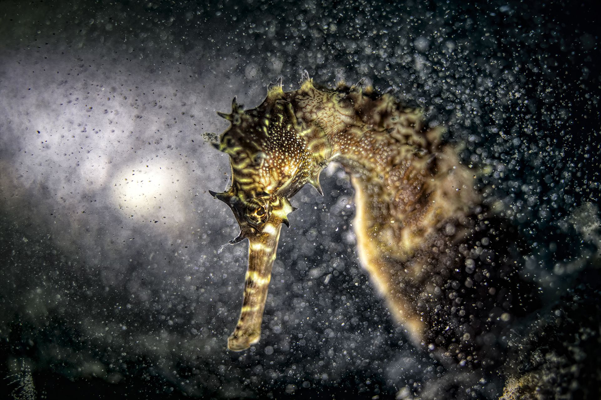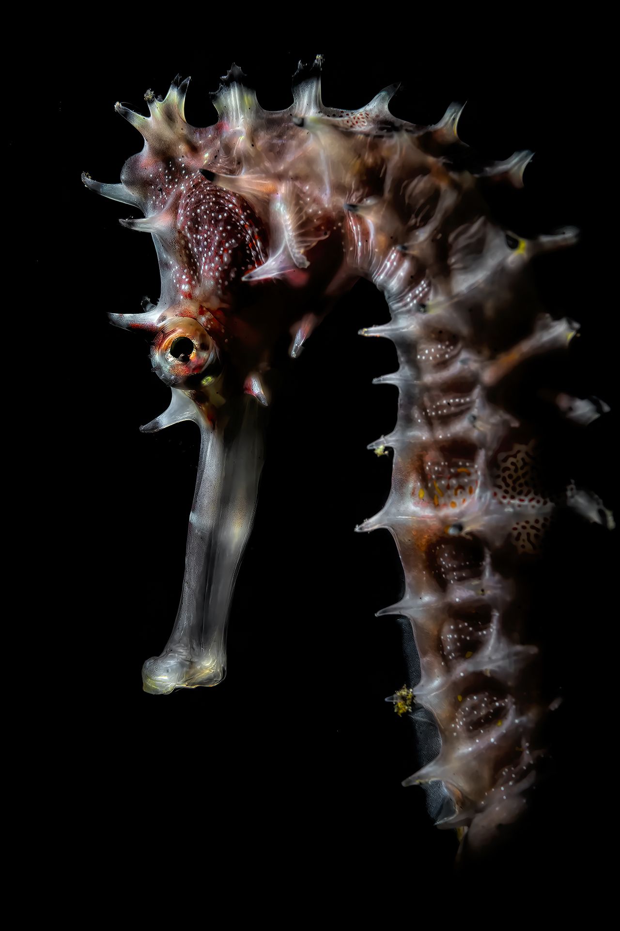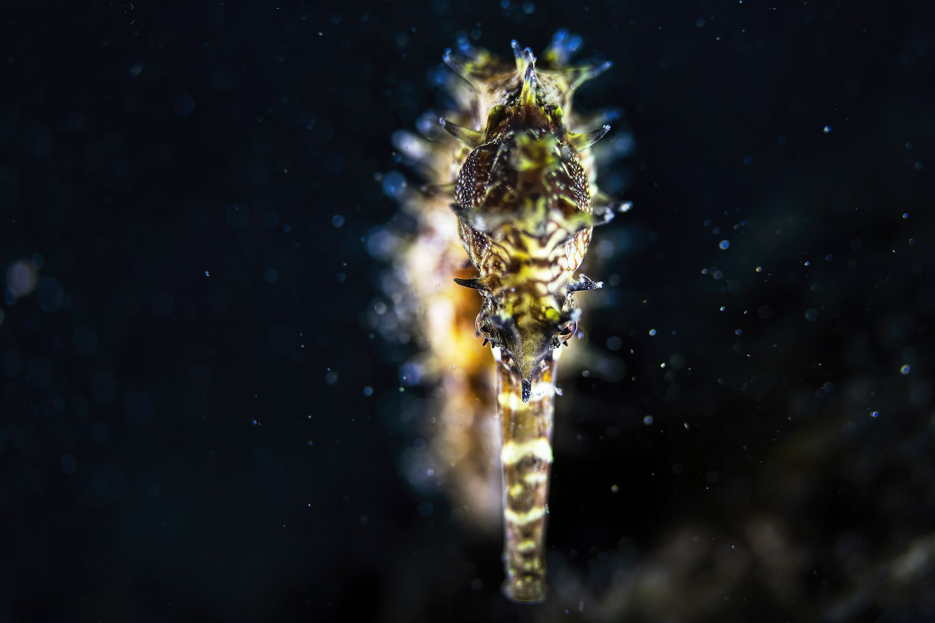 during a dive in Anilao to Jano Bay I take a click of this porcupine seahorse (hippocampus Hystrix) I play with light and this is a result