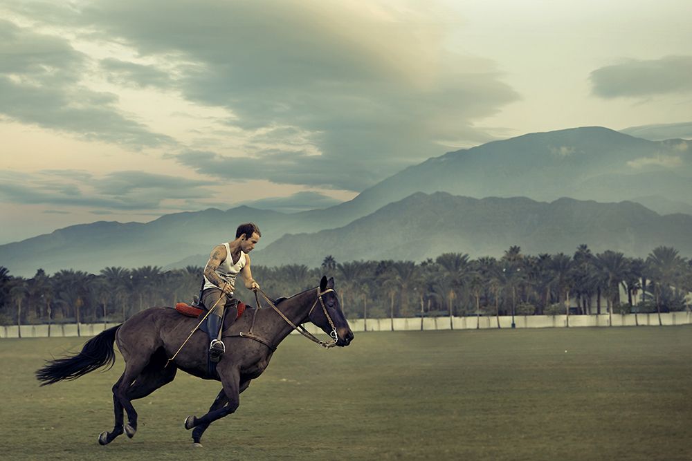 Polo is the sport of kings. Here in the Coachella valley -polo belongs to everyone, to the Eldorado and Empire clubs, to young and old, to women and men, to the green grass and vast sky. And to a photographer’s curiosity. Polo is both ancient and of this moment, in my backyard. I’m not the first, but it can still be discovered, explored and recorded. I was the man without the horse, but this close group was happy to share their sport and passion with me. I spent many days watching, and shooting, finding simple moments in the action and across sprawling fields.