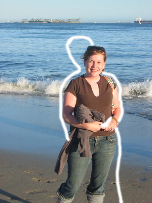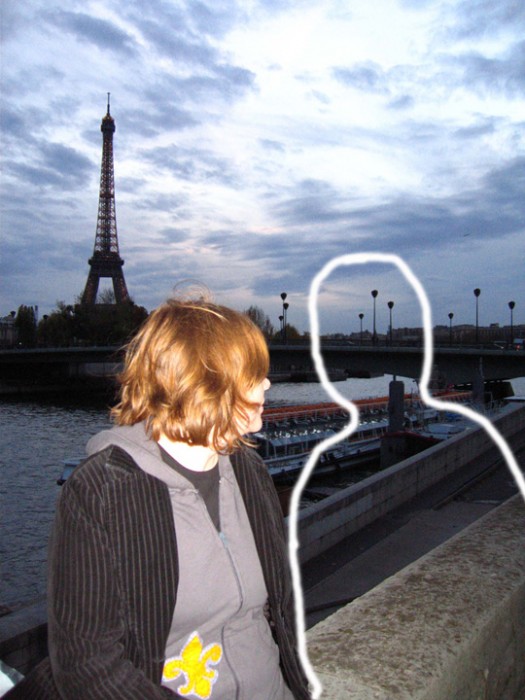 I used a Canon Elf Power Shot and set it to the highest quality the camera would allow. Mr. Right was drawn using Photoshop. I like that leaving him hollow allows the viewers to fill in their own vision of what he looks like. The images convey everyday candid pictures that people take to document their lives and relationships.