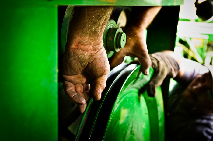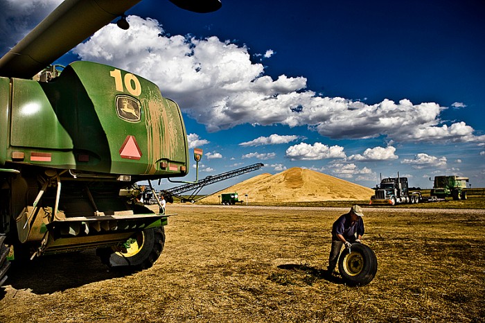 Growing up on a farm, I never thought much about where food came from. We were busy following the rhythms of the land and seasons, and if you were hungry, you could just walk down the field and tear into an ear of corn or a garden-fresh tomato. When the custom cutters came through, things got exciting. Harvest meant a payday for my dad and grandpa, but it also meant strangers passing through, bringing their ways and ideas to our remote corner of Kansas, working side by side for a week or so before moving on. For a country boy with little experience and big ideas, it was the old-time romance of the road, with the added twist that these farmers had left behind them not some terrible past, but a small corner of the country or other that they loved best, just to make a decent living and see a speck more of the world.