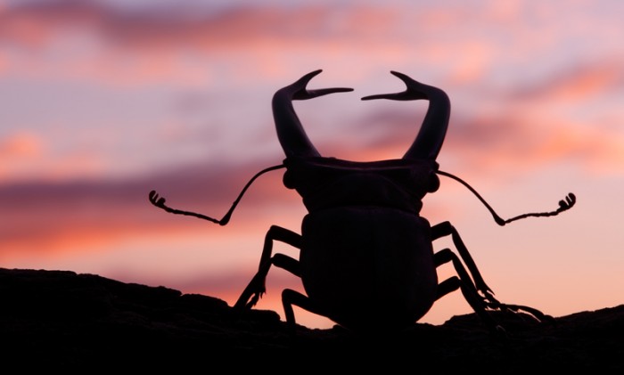 I found this stag beetle (Cyclommatus elaphus) as the sun was setting over Gunung Leuser National Park in Sumatra. I captured it almost in silhouette, to accentuate its incredible horns.