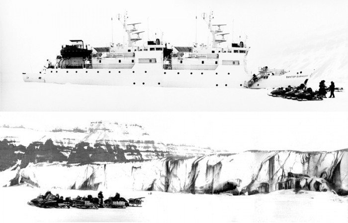 Spitsbergen,around the'ViktorBuynitskiy'stuck into the ice..