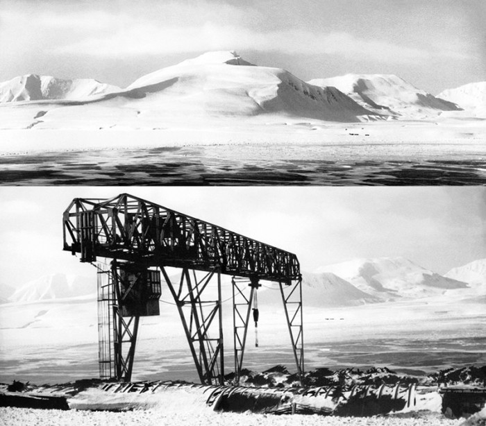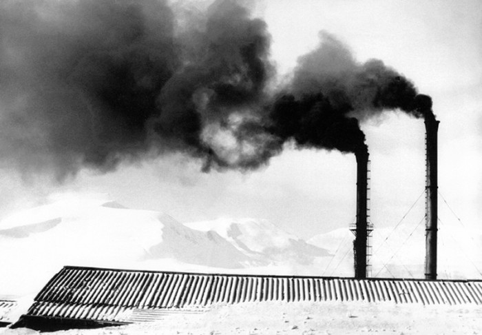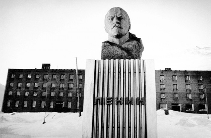 Barentsburg,Spitsbergen..it is a russian enclave in norvegian land..,coal mine and miners still working,Lenin statue observes the frozen landscape and its shades of whites throught the black steams ..