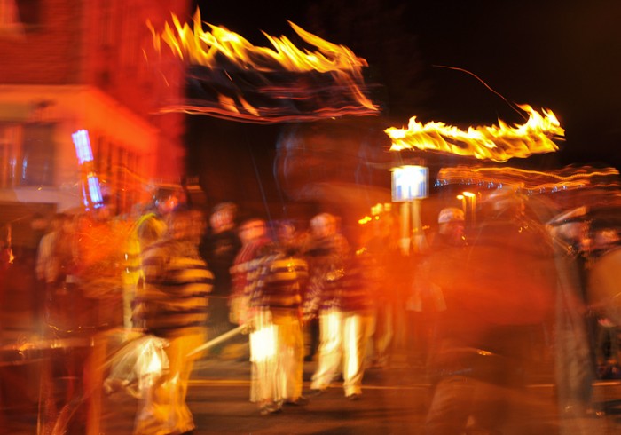 Bonfire celebrations are an important part of Sussex folklore the streets coming alive with fire. I set my camera to slow exposure in order to capture the unreal quality of the evens.
