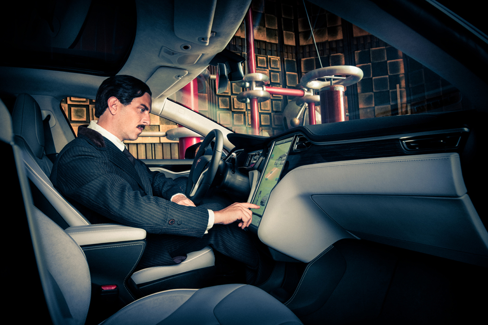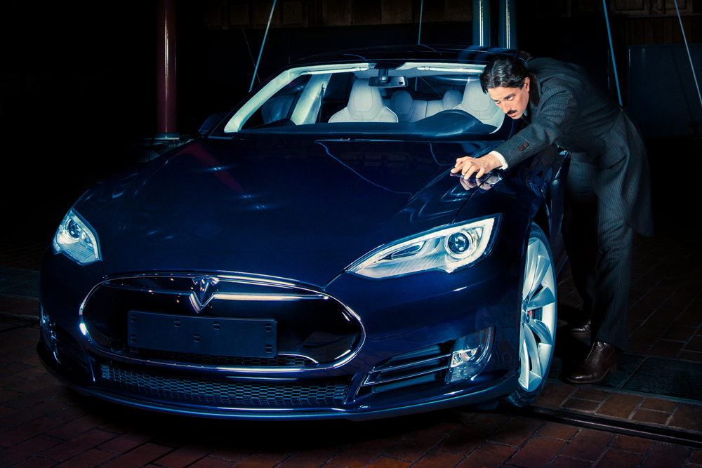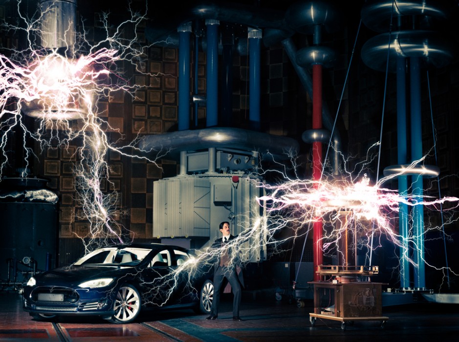 using a new Tesla Model S and original a Tesla spoil to generate real flashes.