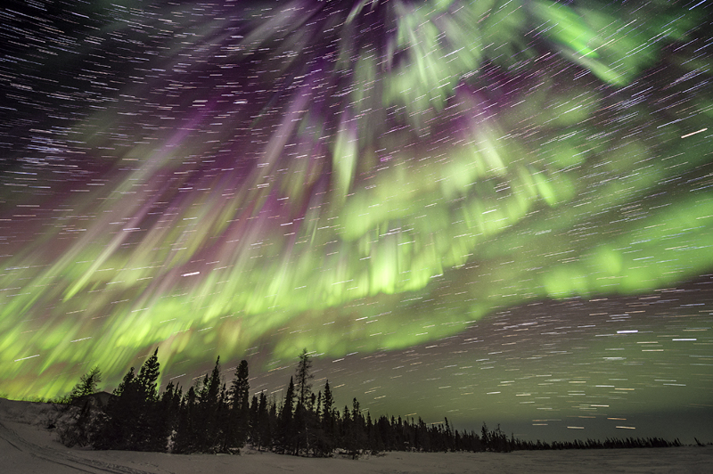 Star trail - Northern lights - Wapusk National Park - Manitoba - Canada