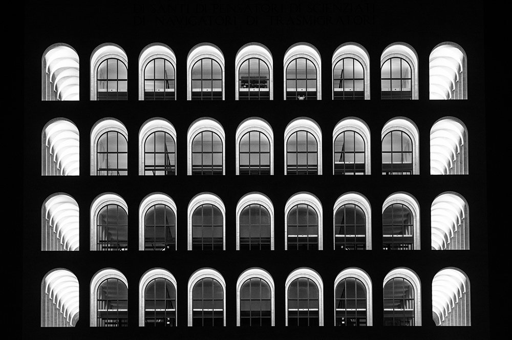 The purity of a travertine cube perforated on each side by 54 arches