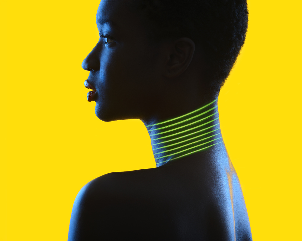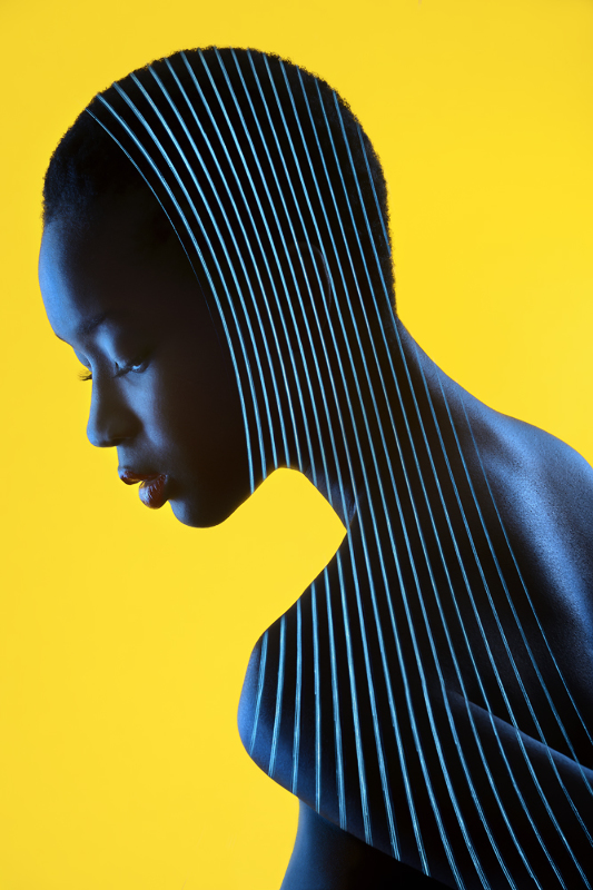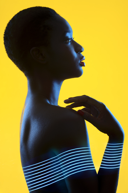 like studio gel-coloured flash units along with continuous laser light. Simplicity and