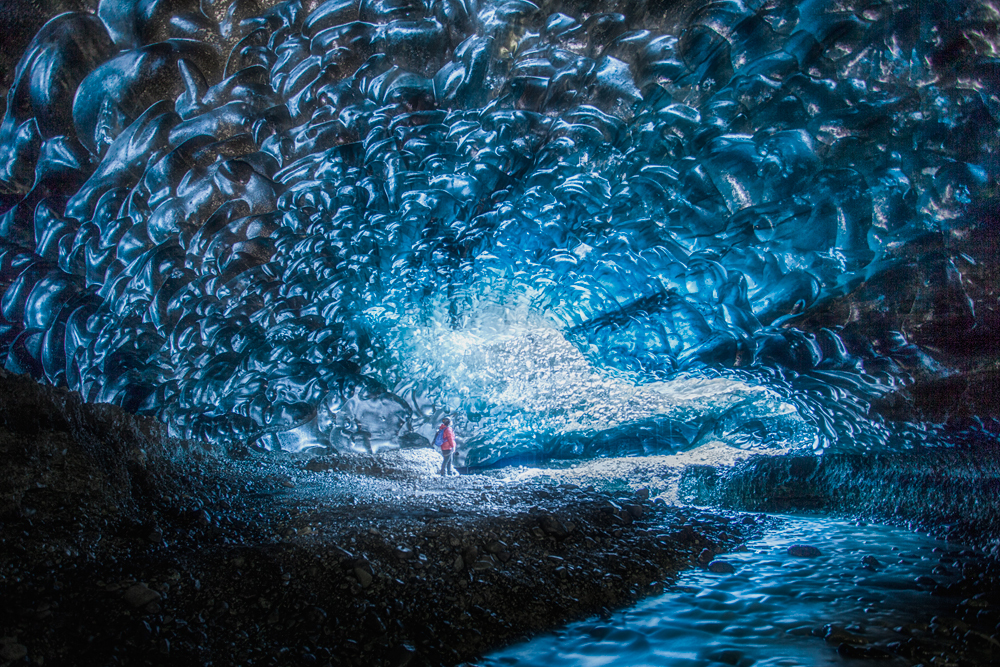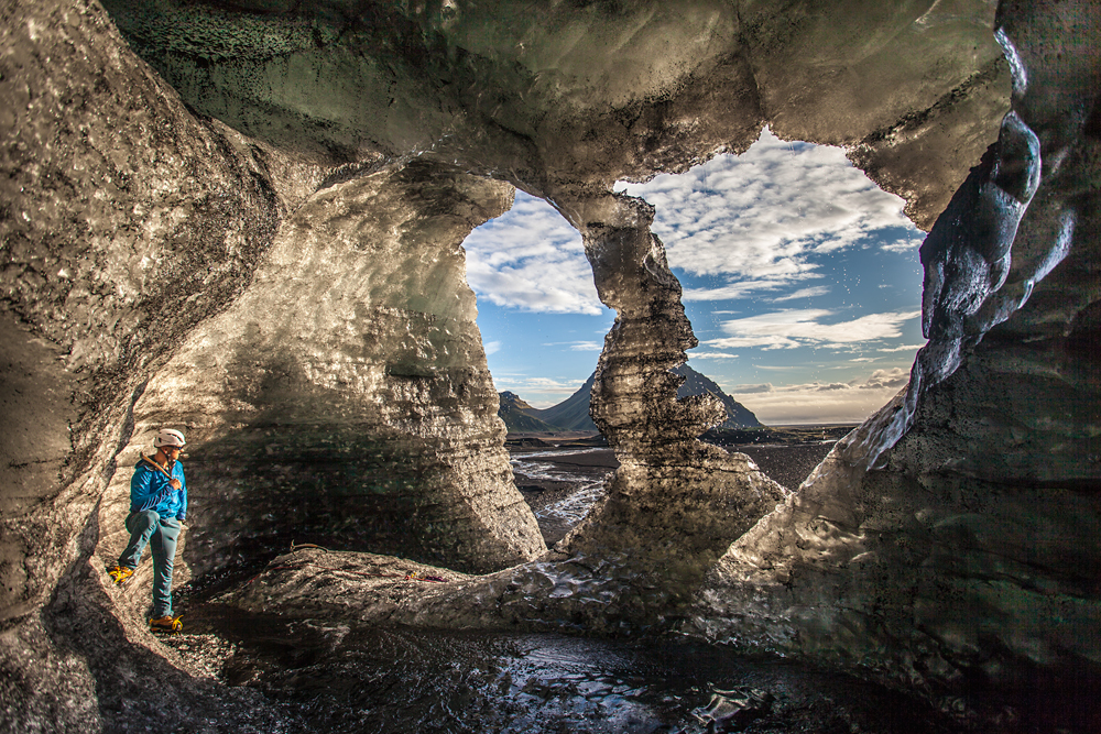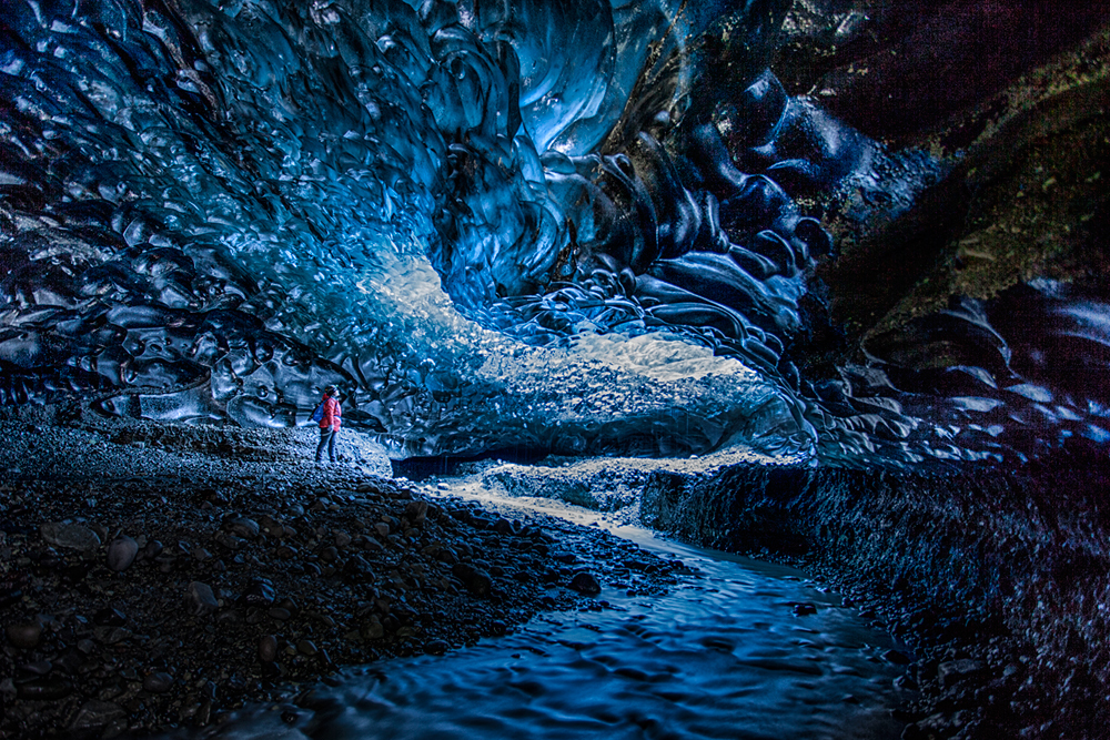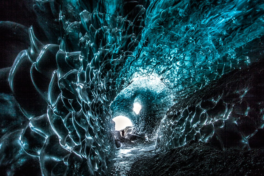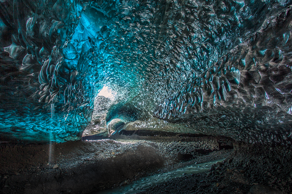 Icelandic ice cave tunnels are situated in glacier's end bottom. They are