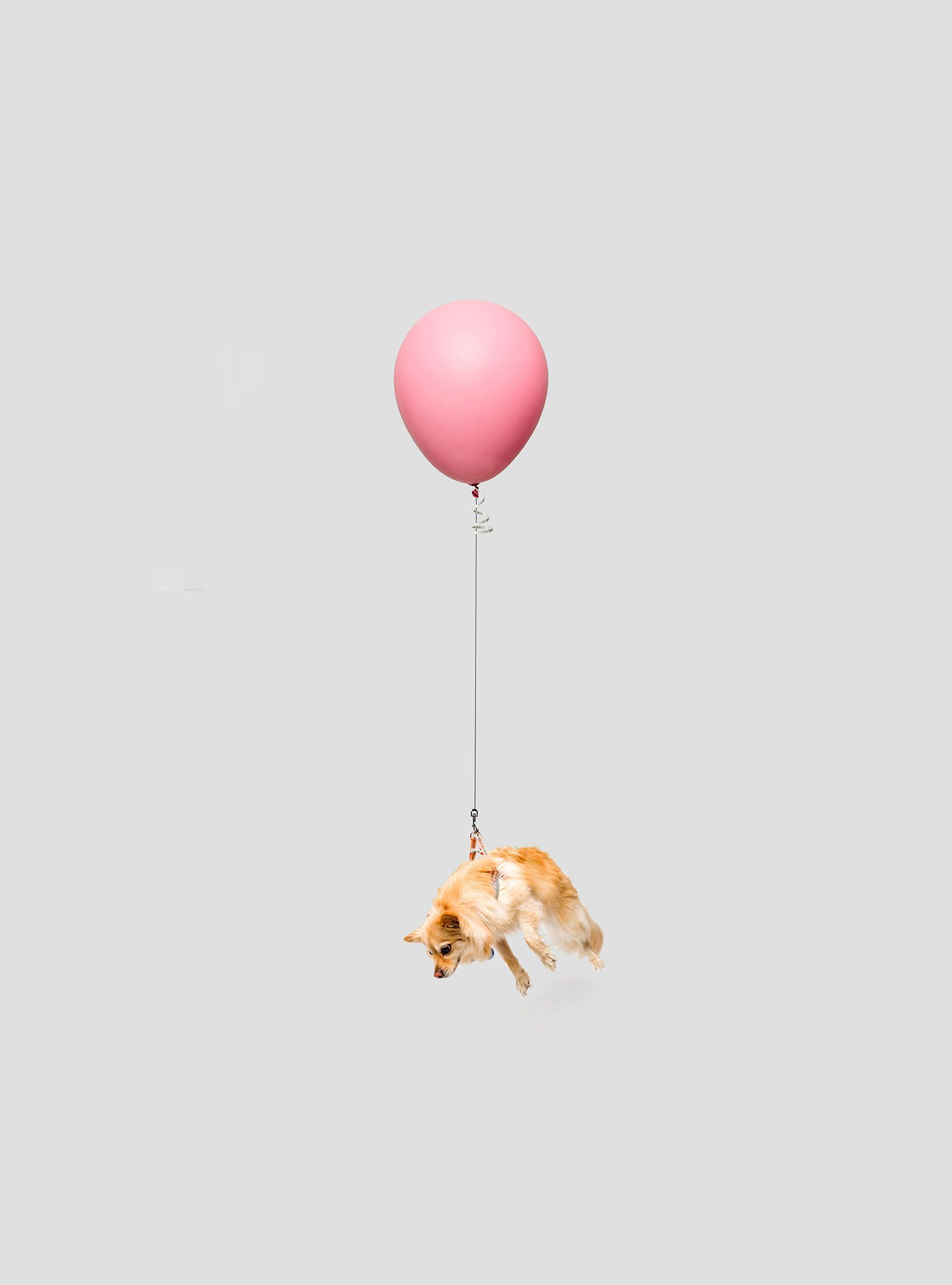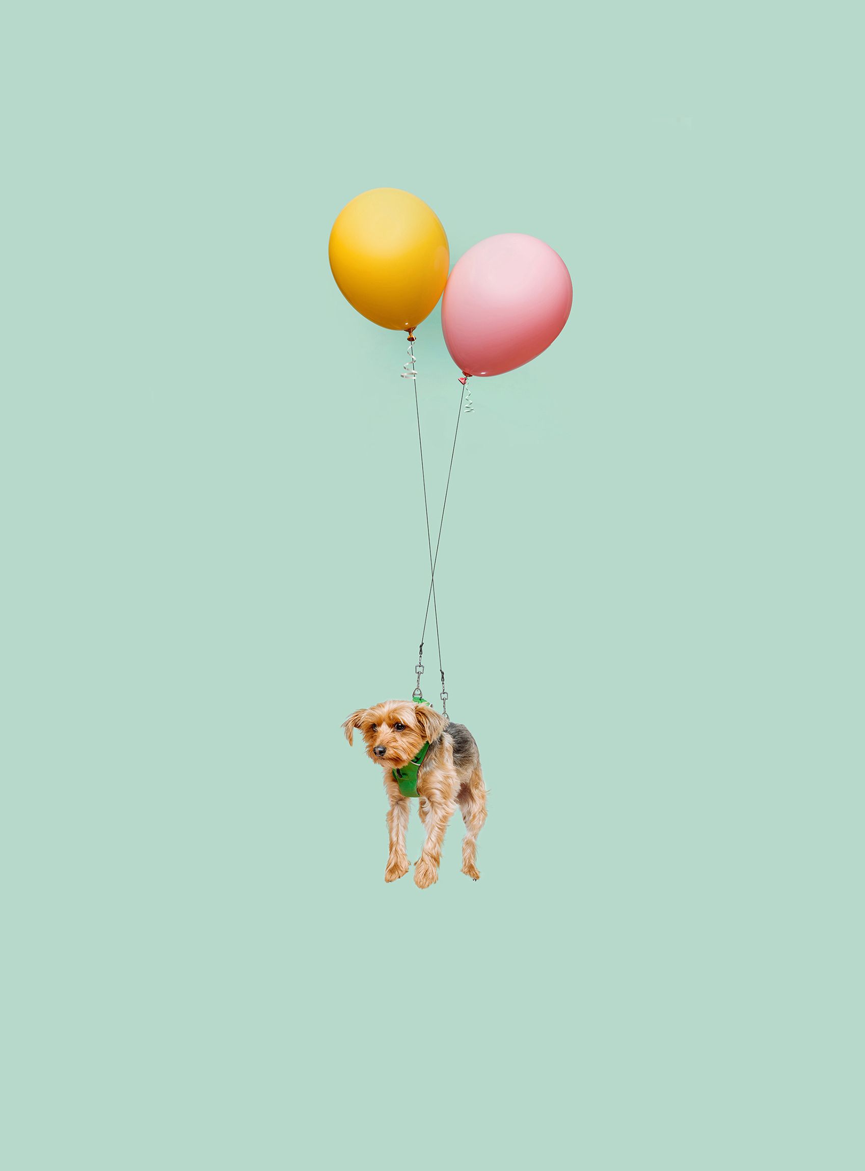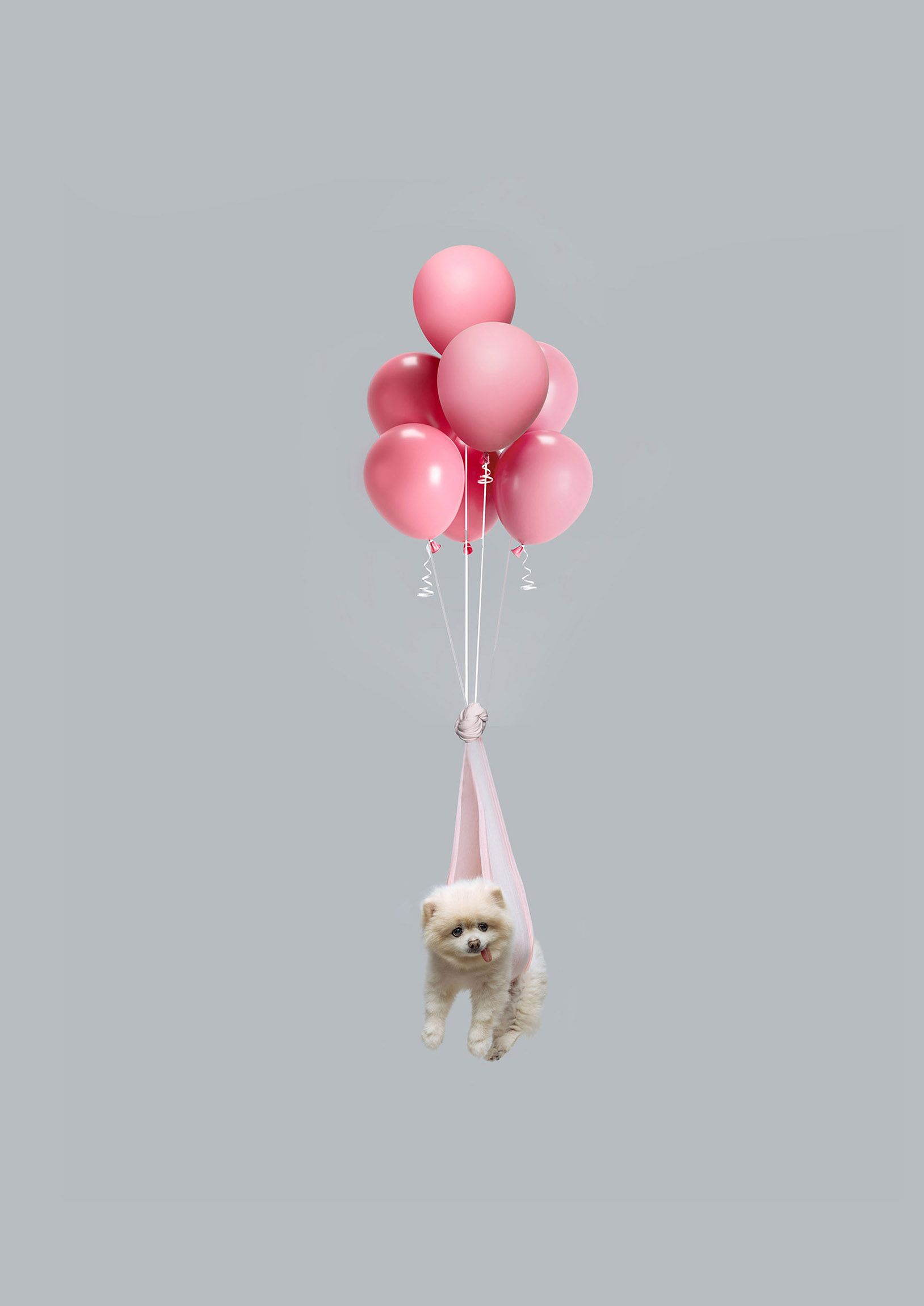 Can you actually float a puppy? Maybe, but maybe not. How many balloons would it actually take? This series is simply whimsical and made to put a smile on your face.