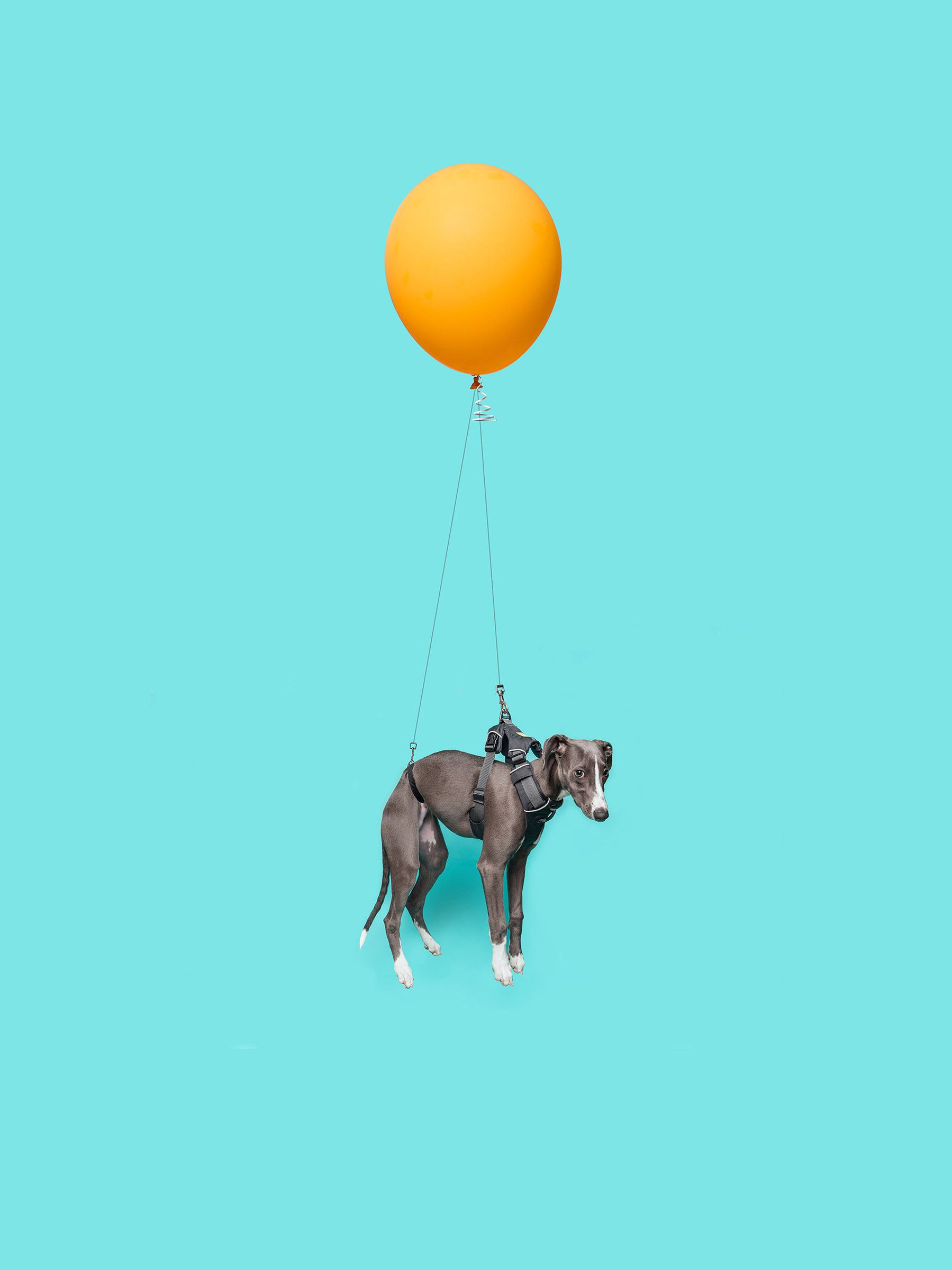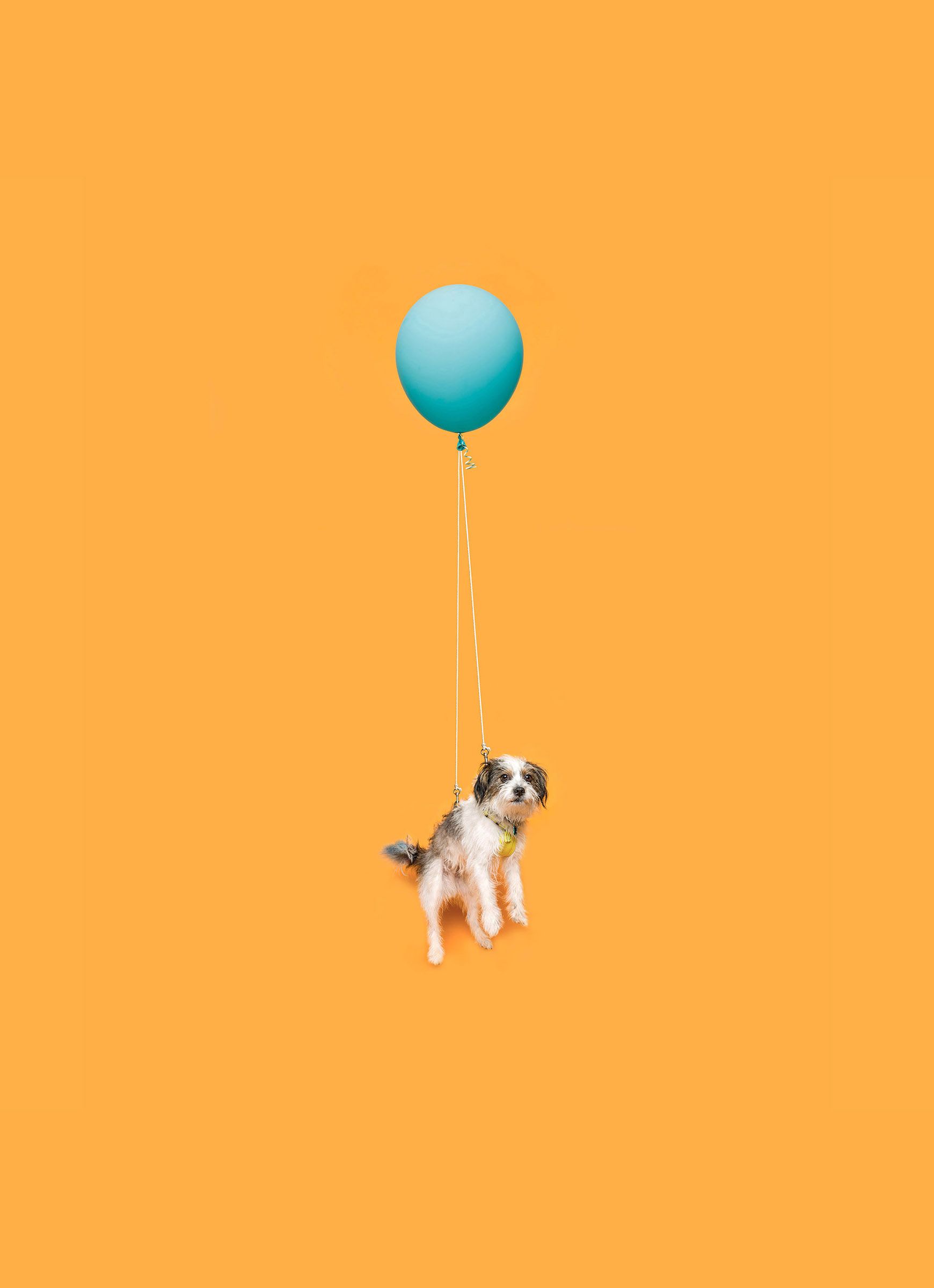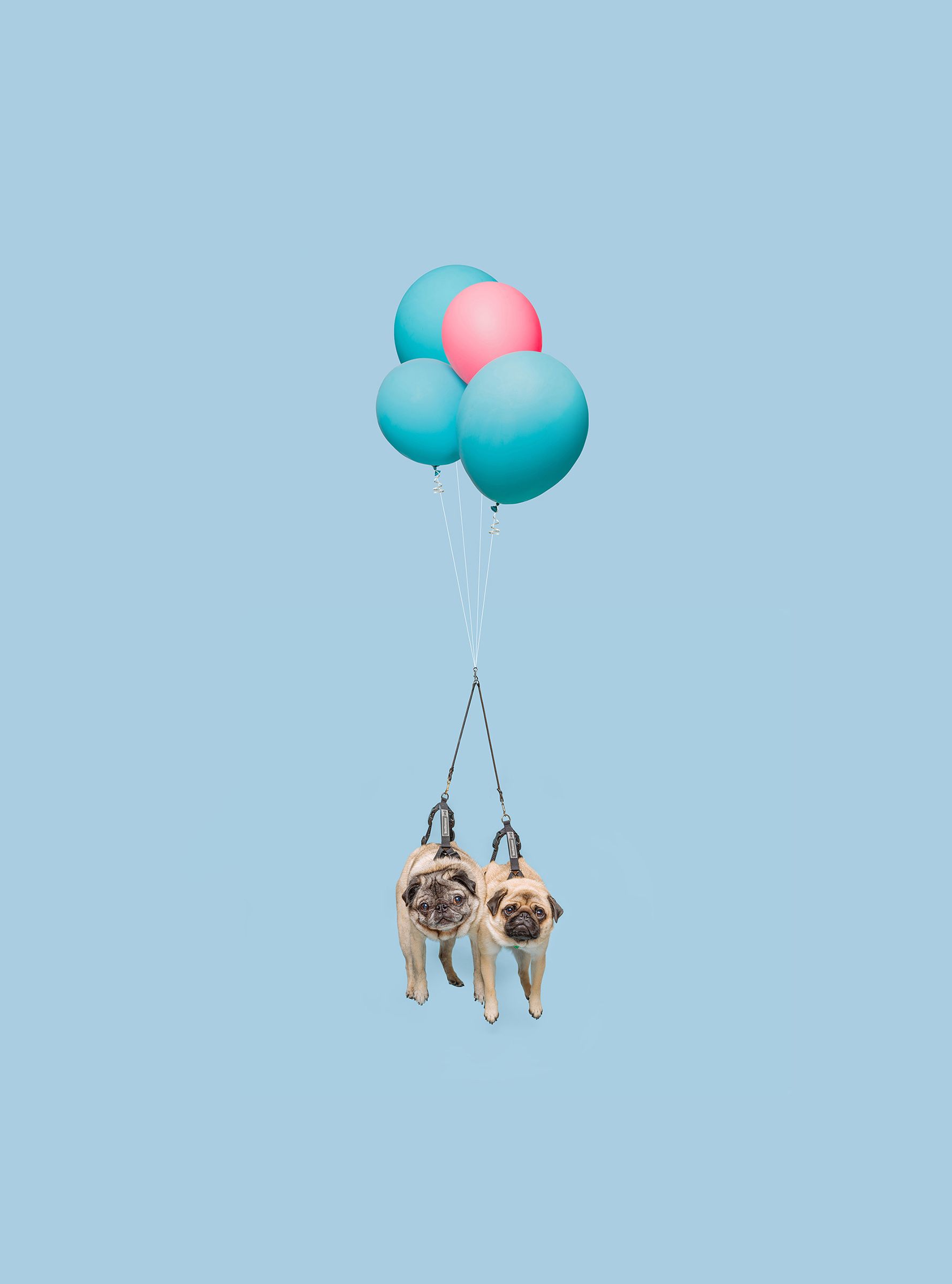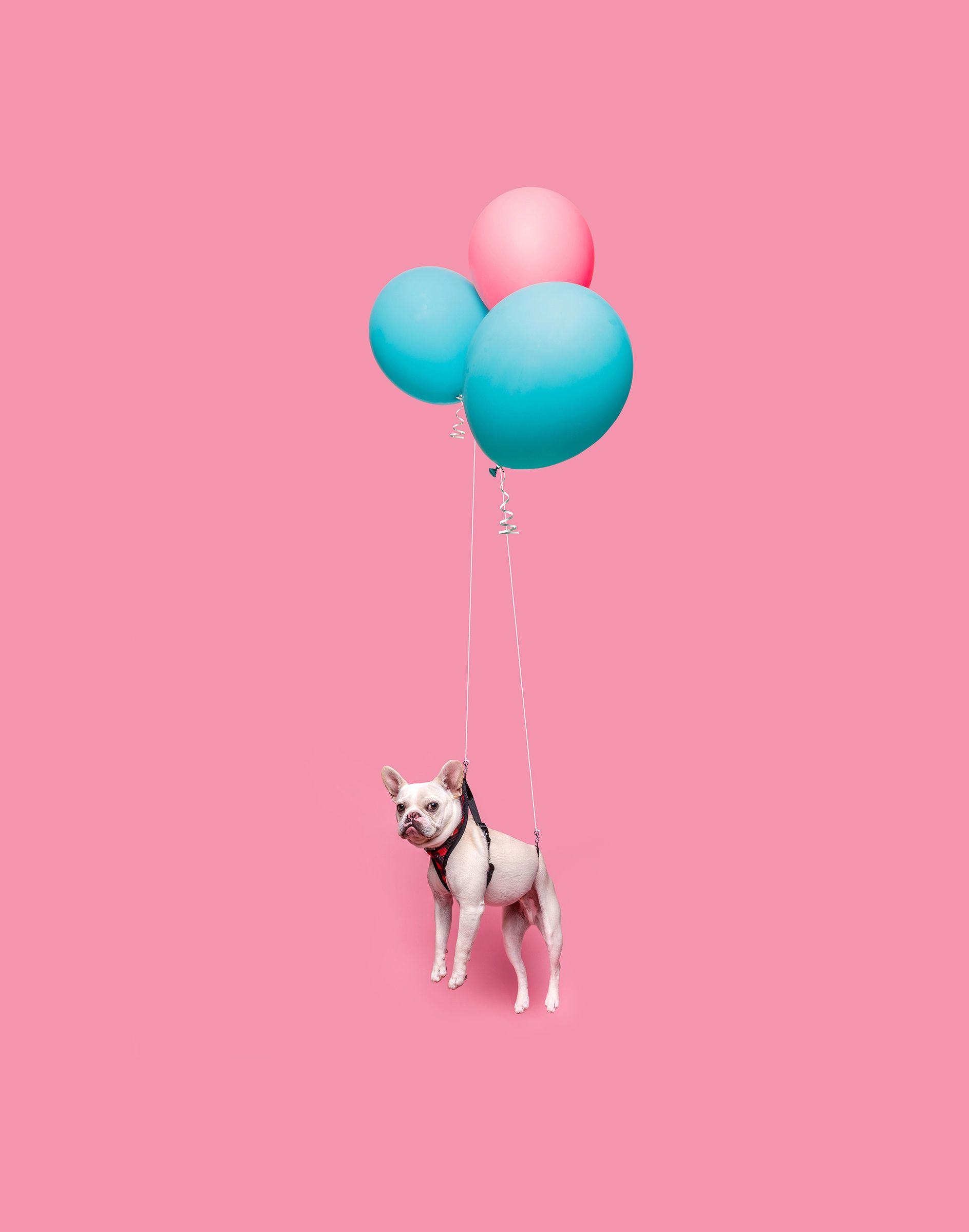 Can you actually float a puppy? Maybe, but maybe not. How many balloons would it actually take? This series is simply whimsical and made to put a smile on your face.