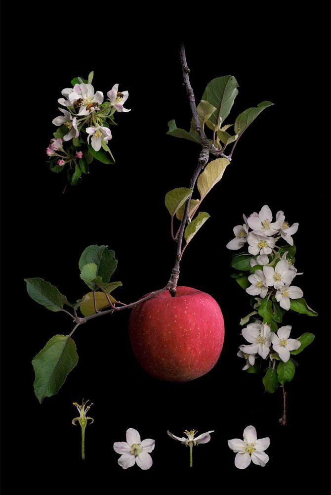 I am an orchardist. I have endeavored to create an artistic record as a photograph of fruit that I have grown in its "most visually beautiful form prior to being harvested". My artwork is similar to "Botanical Art," seeking to depict both precision and a level of detail, combined with aesthetic beauty. Multiple fruits ripen in orchards. However, not all fruit can be considered an object of beauty, in terms of its shape or leaf distribution. Daily tending of plants which is done all year round, as well as weather conditions that change on a yearly basis result in annual variations in the final