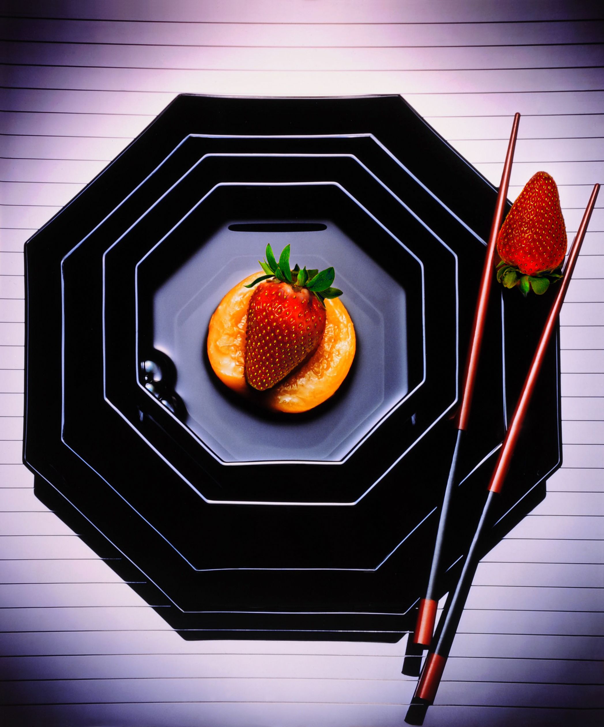 Studio work of Strawberry and Peach still life shot.