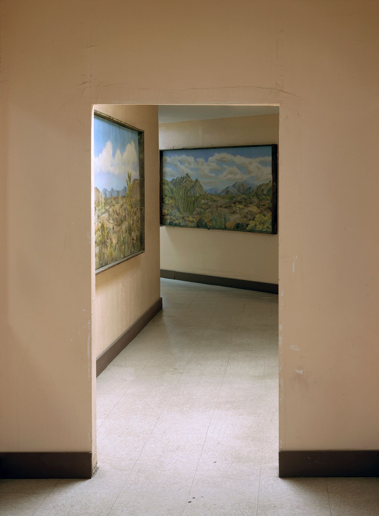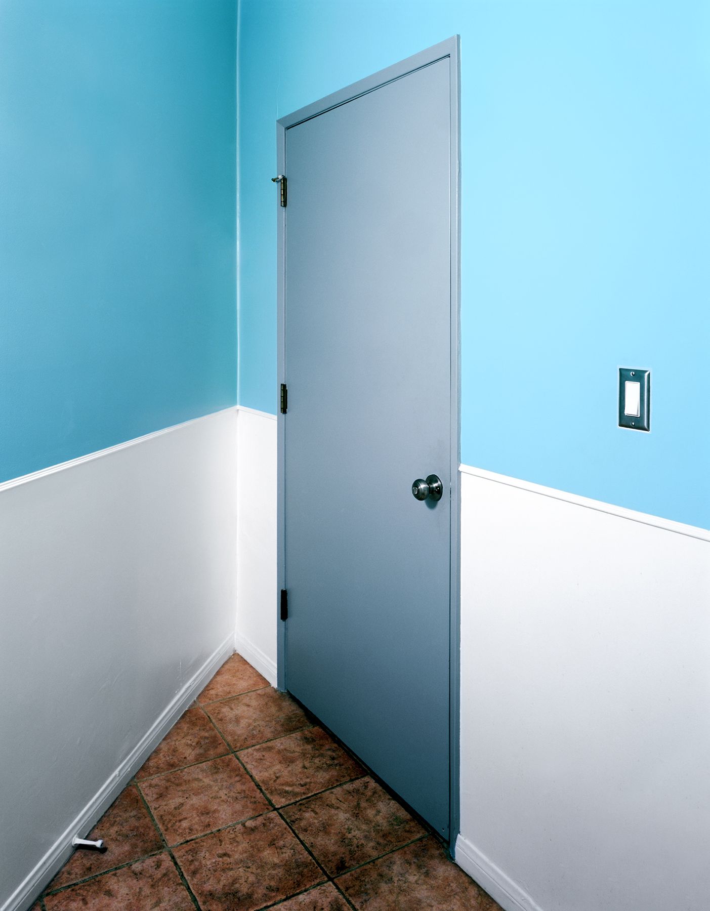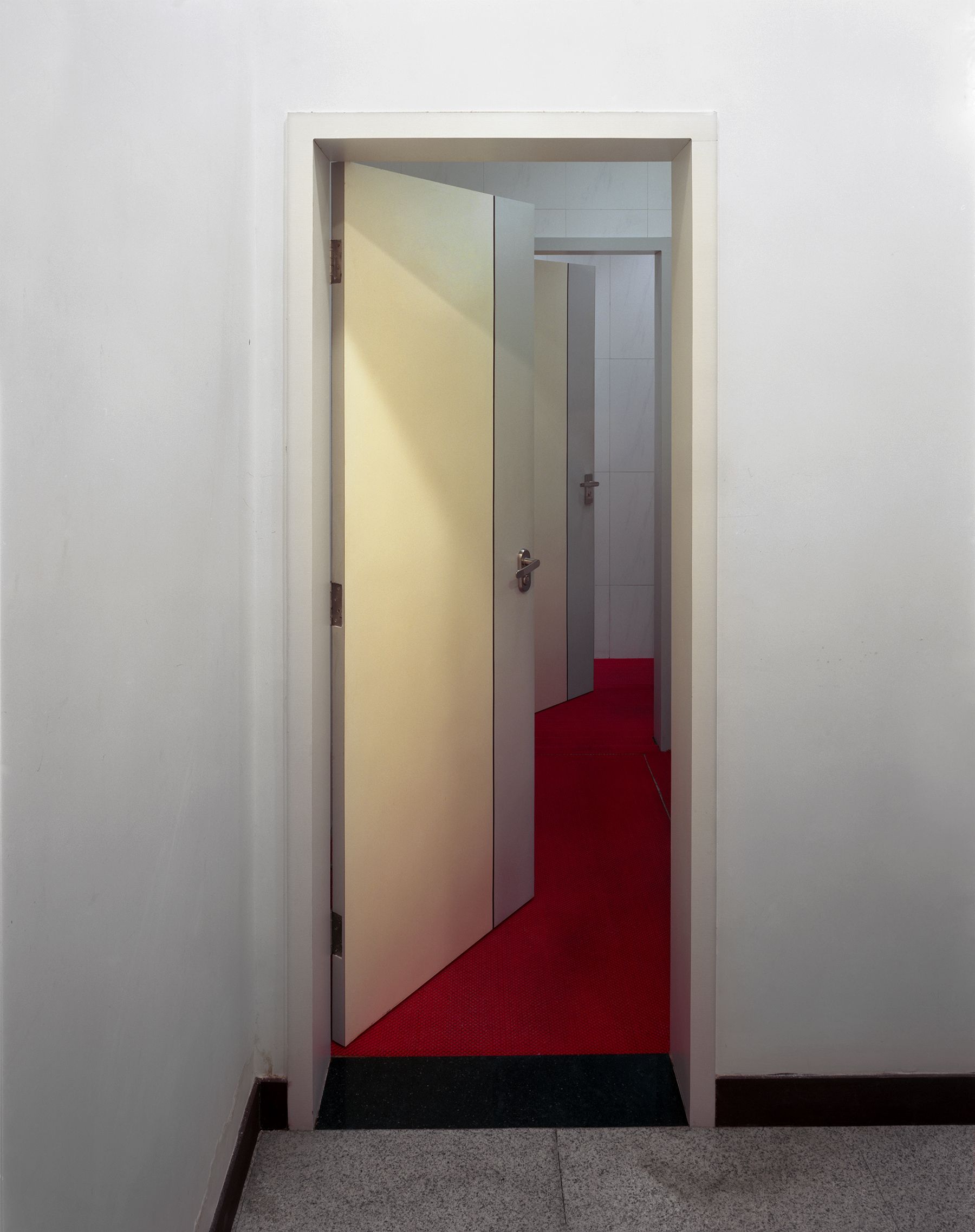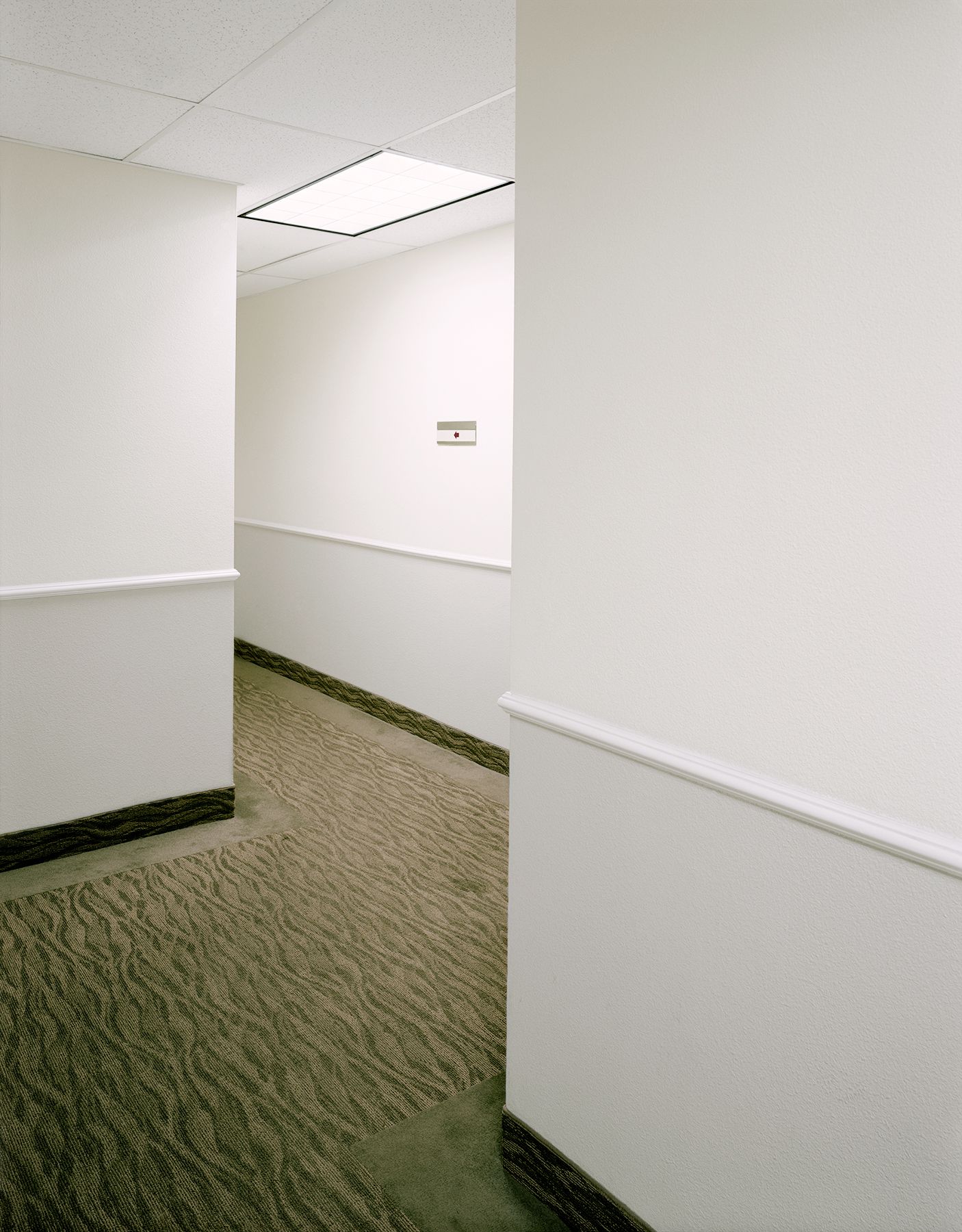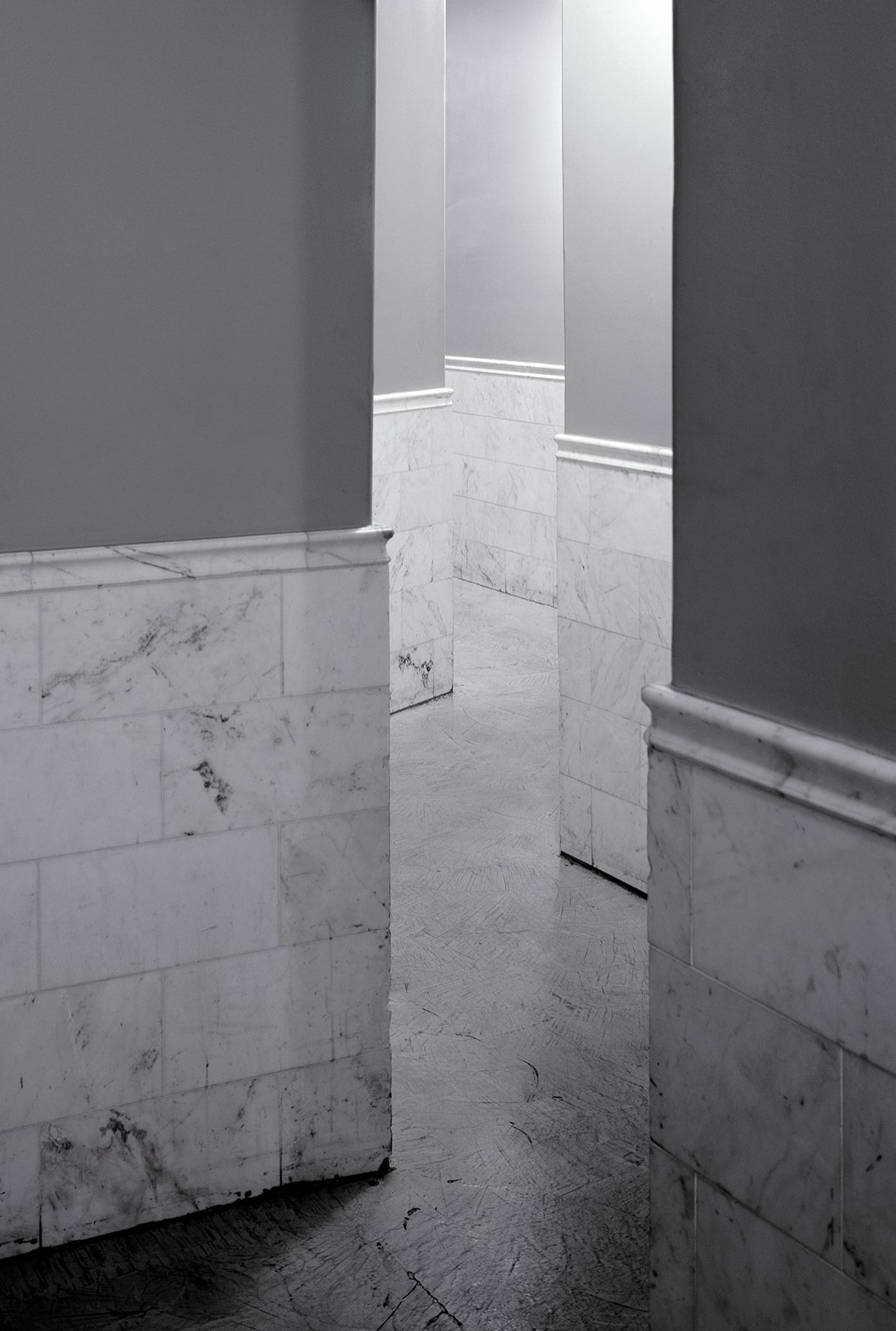 NOT AN EXIT proposes a closer examination of the everyday locations that we routinely pass through. The subjects of the series are doorways and hallways, liminal spaces intended for movement that somehow appear impenetrable. Void of cultural signifiers, belonging to no specific place or location, a universality of line and form reoccurs from image to image, offering a deeper assessment of the formal elements that make up the spaces we pass through and sometimes never truly see. We are going somewhere and yet—there seems to be no way out.