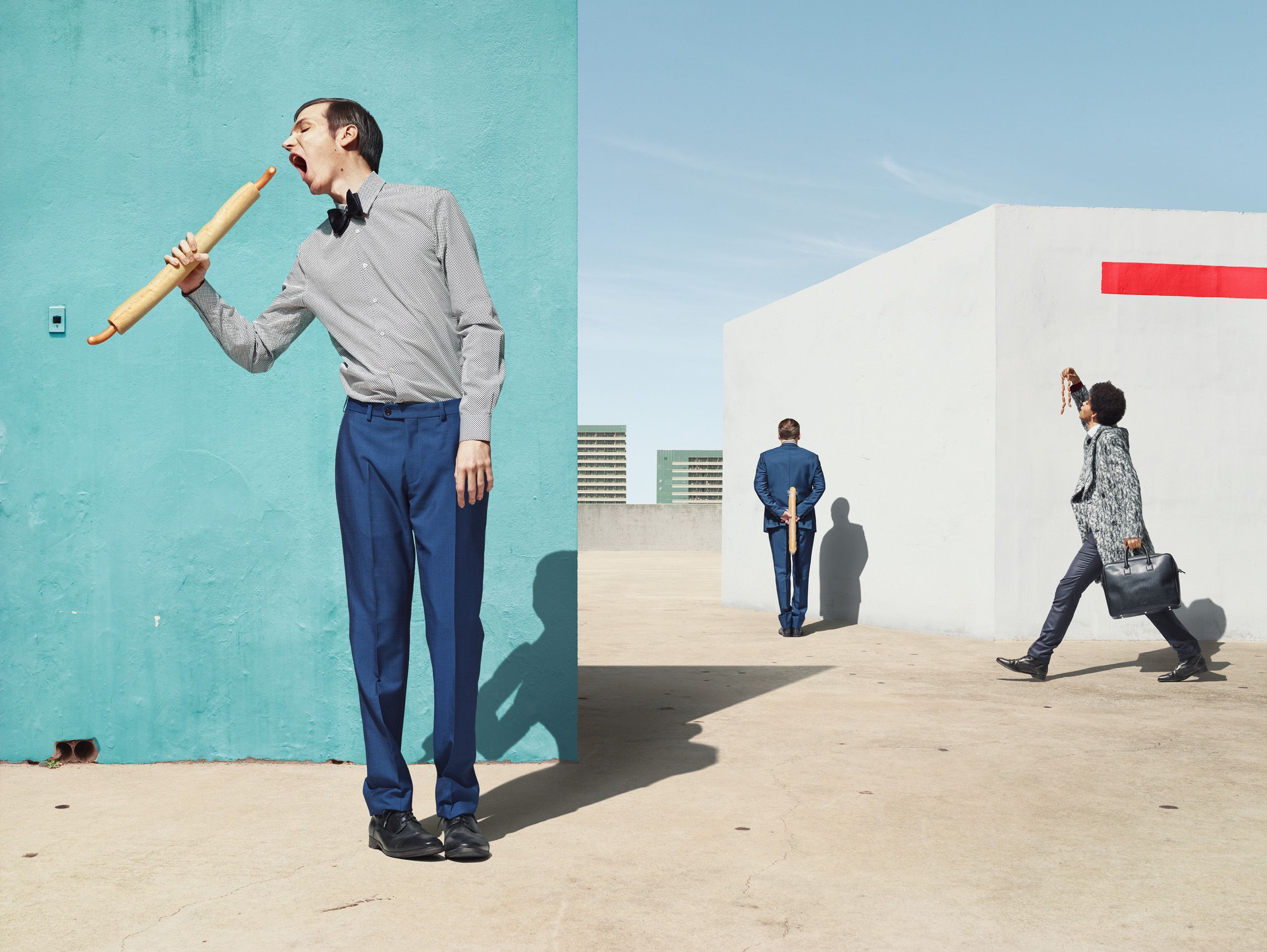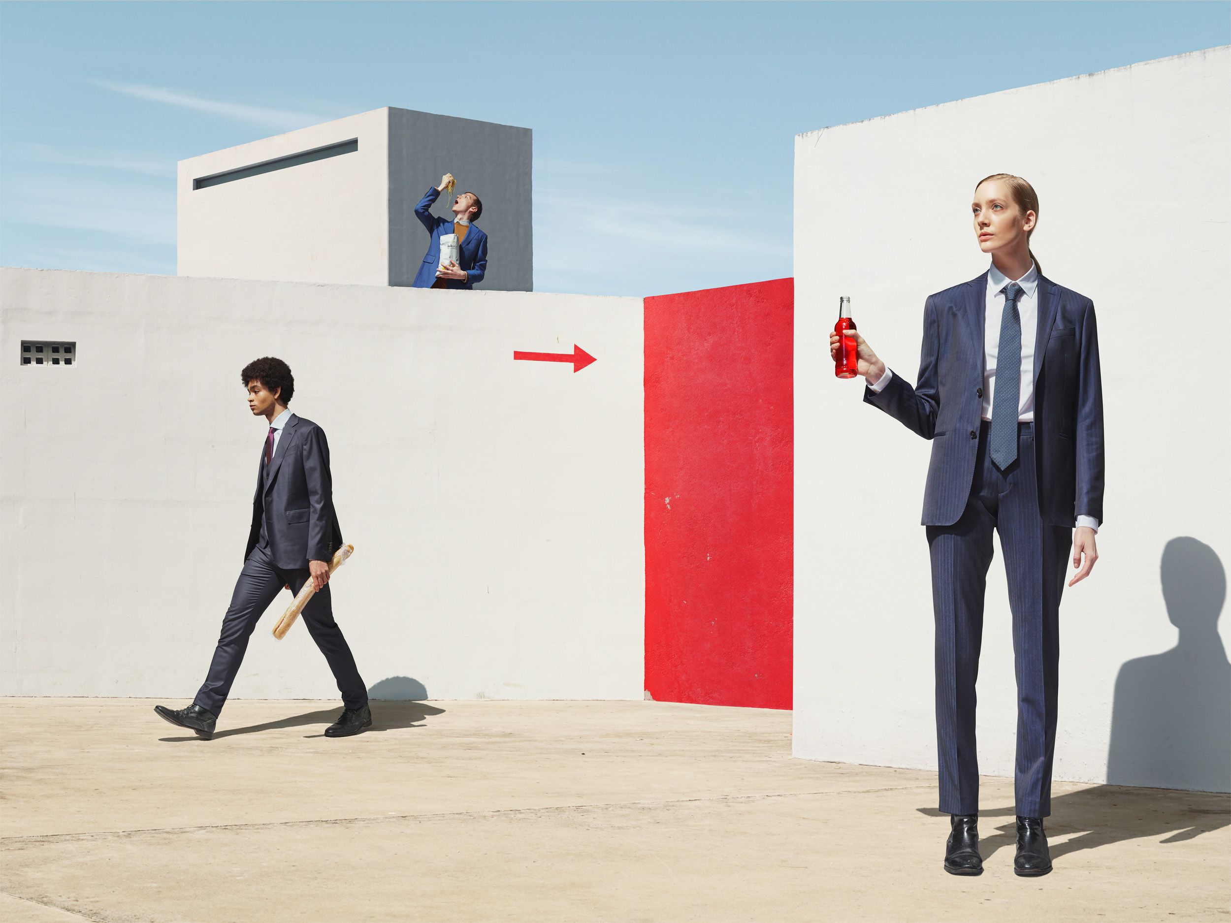Therefor I’ve created abstract spatial compositions, populated by surreal figures - Using collage I turn people into marionettes on a theatrical stage.