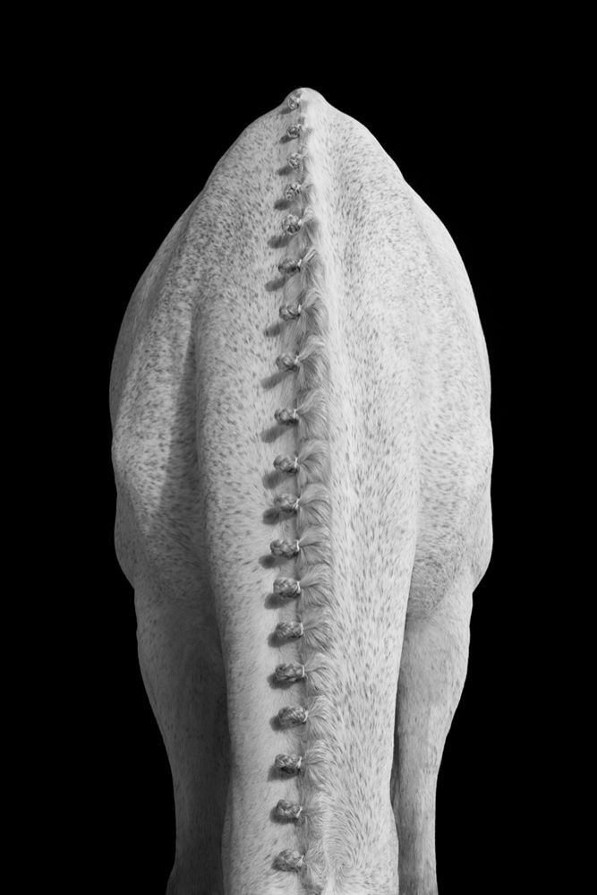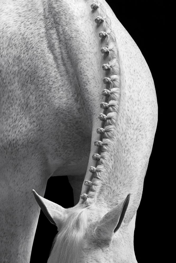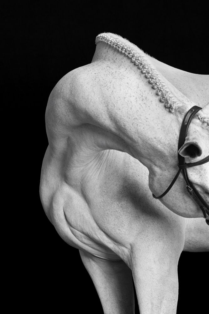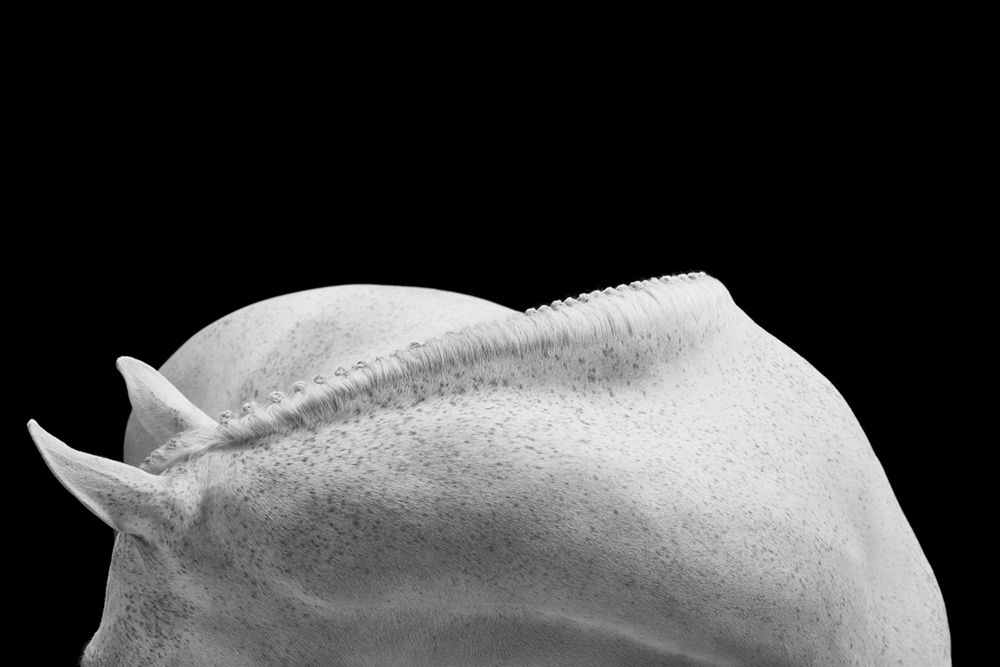 Through a fashion-inspired lens, "EQUUS: Light & Form" focuses on the distinctive characteristics of some of the world’s most elite hunter and jumper horses. Photographed to complement defining attributes like glistening coats, defined musculature, and immaculate braided manes and tails, these horses are delicately sculpted with light, appearing to be carved from stone. Each of these animals is a near-perfect example of their species; they remain unwaveringly confident and poised.
