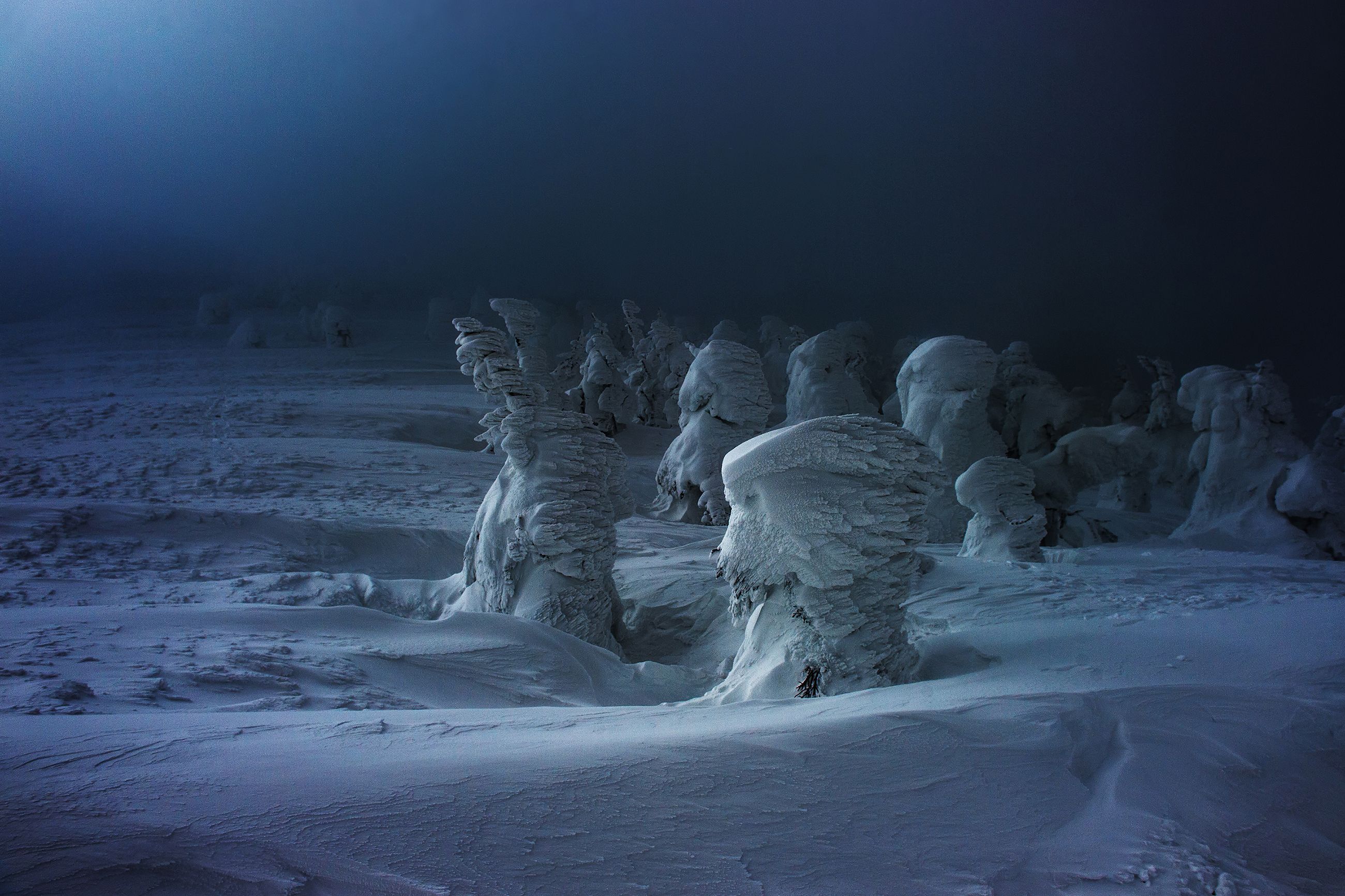 The humidity peculiar to the basin surrounded by the mountains,, and an irregular shaped object created by cold air and strong wind. People are called "Ice monster" with a heterosomorphic appearance of the variant. The sight that the harsh environment and the irregular "IceMonster" show is also a source of primitive religious perspectives,