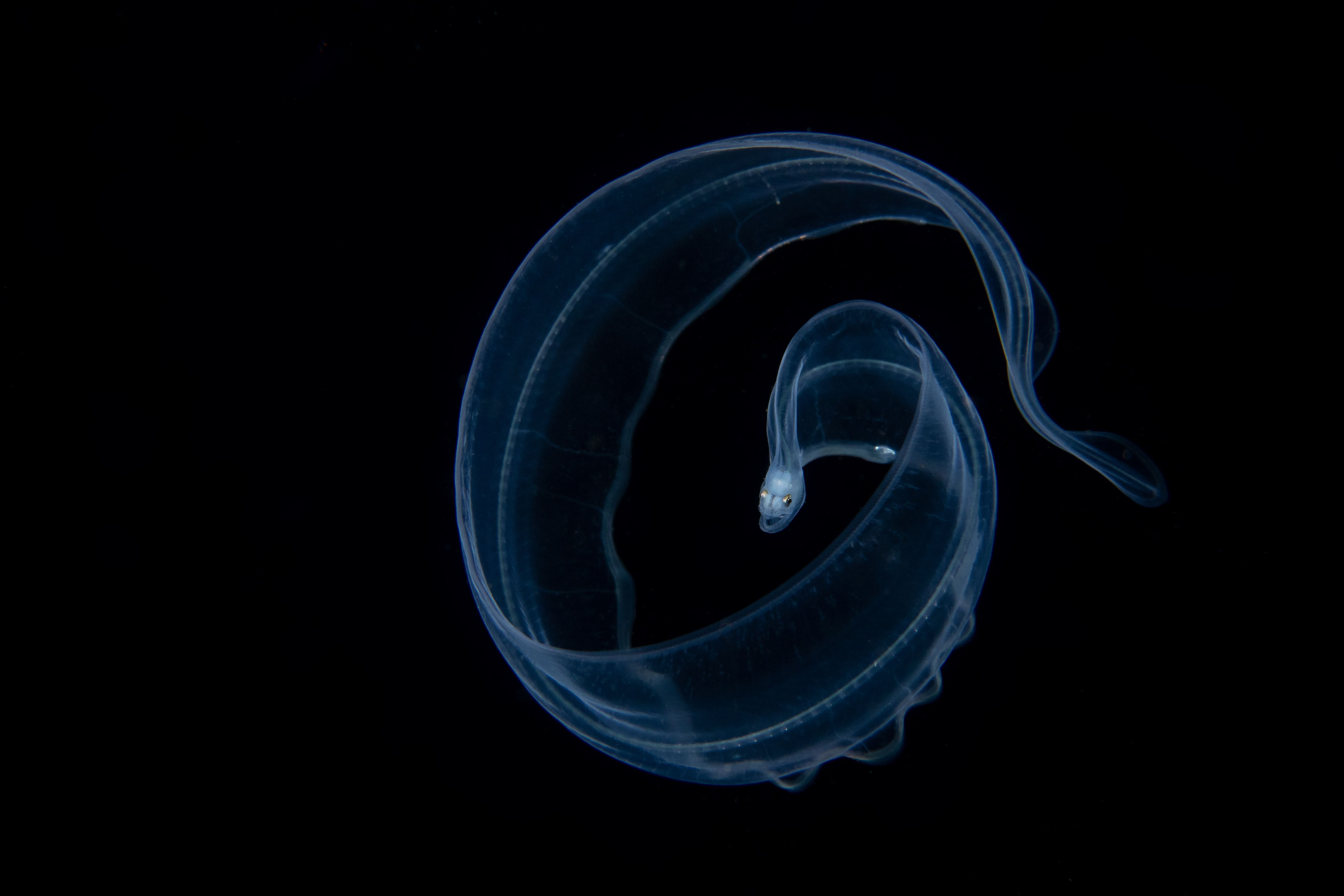 baby eel in black water dive