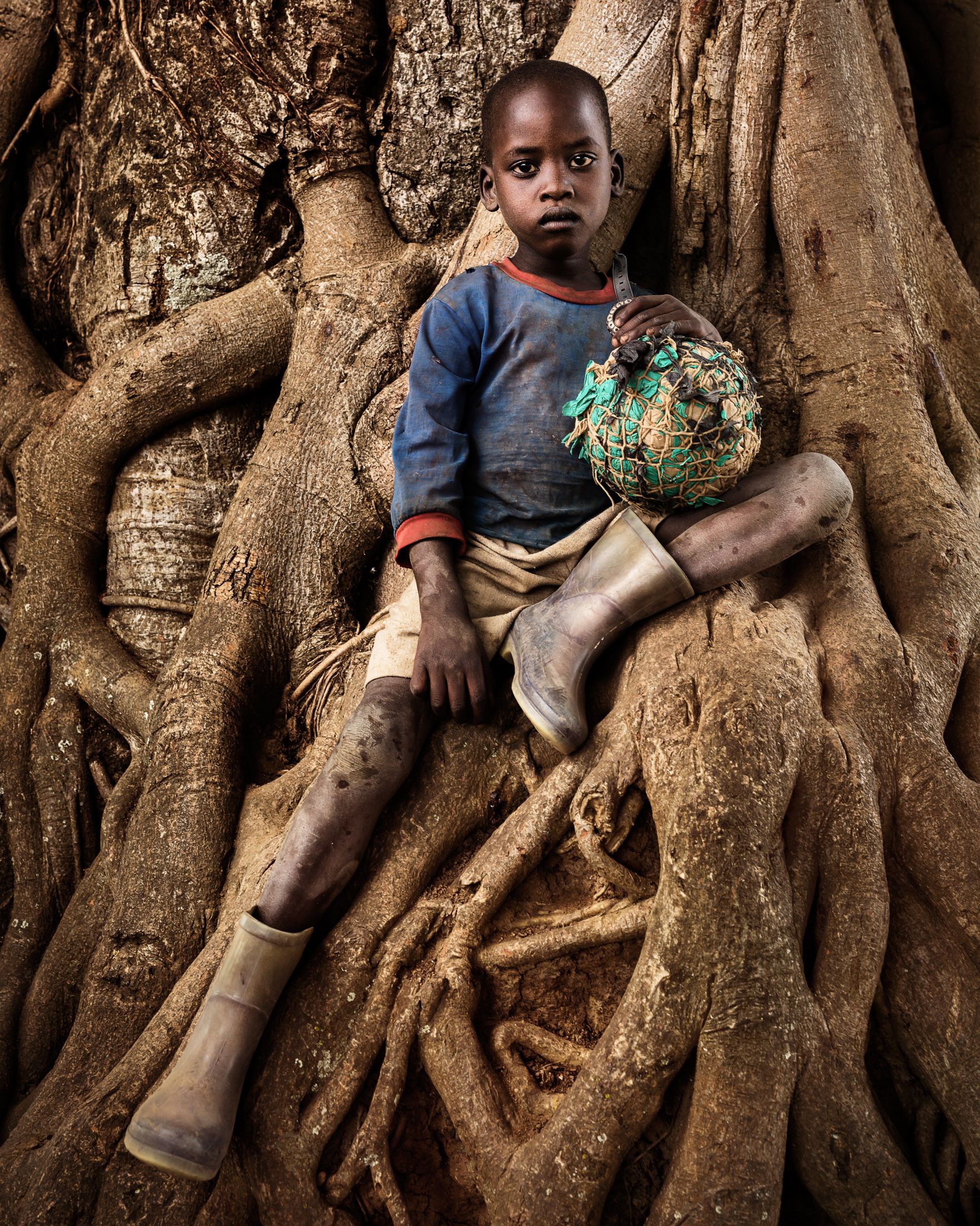 Boy in Northern Uganda with his football made from up-cycled trash.