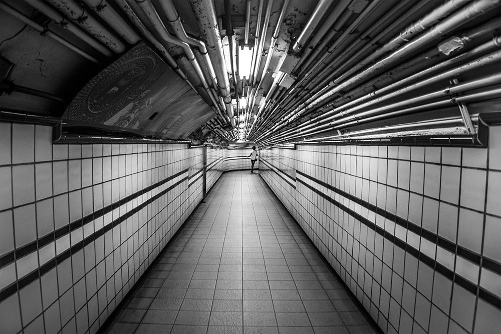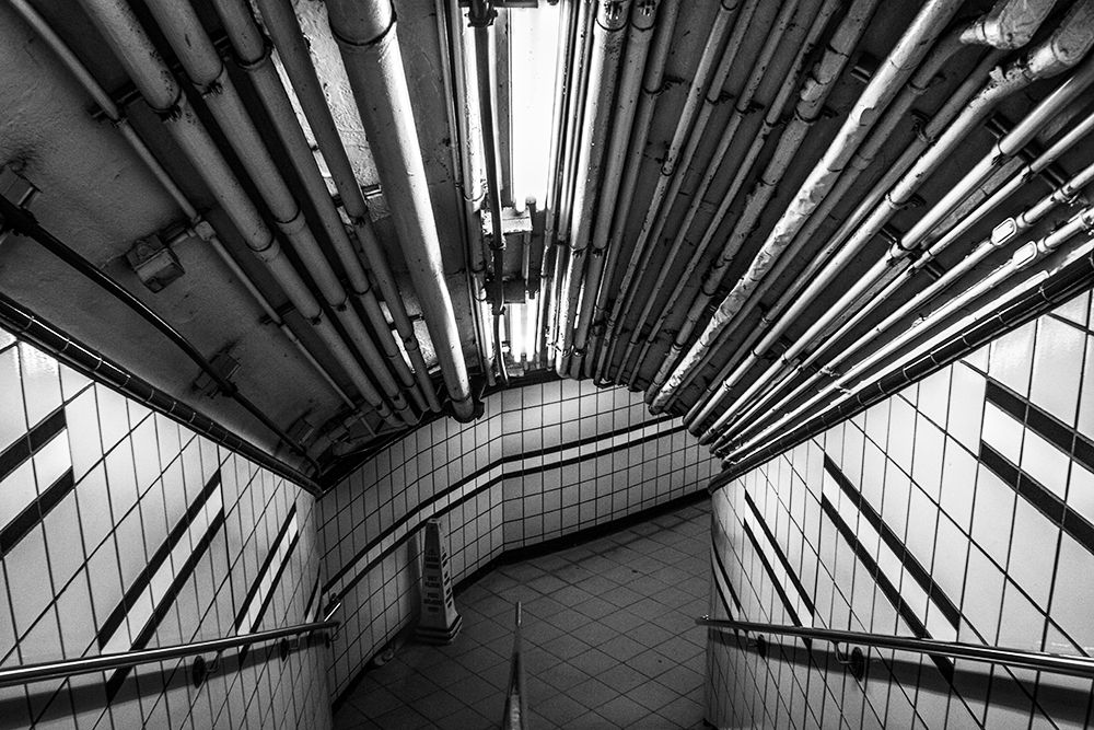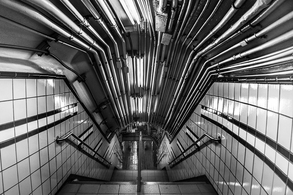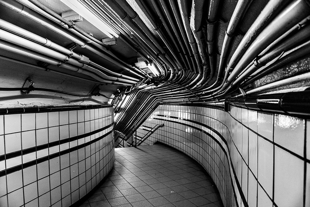 As I walked down the stairs of Path Station at 9th Street in New York, rugged textured cable pipes ran over my head creating a trance-like, haunting pattern to an infinite end. It looked nothing less than a man-made cave.
