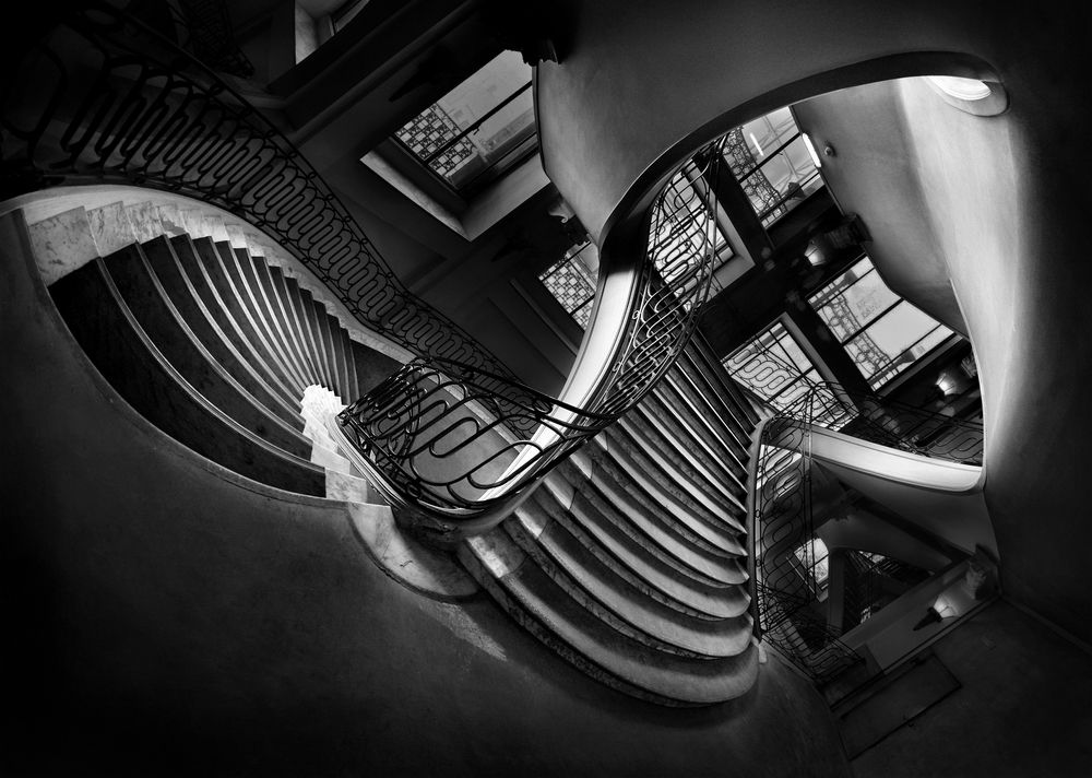 The field of view of a person is too narrow to see many things, especially with respect to such facilities as stairs, where the observer is frequently located inside the object. Photography makes it possible to show the stairs, as if the person sees them at once from different sides or has an almost circular vision. All submitted works are stitched from 2-8 frames made from one or different points, sometimes several meters apart each other.