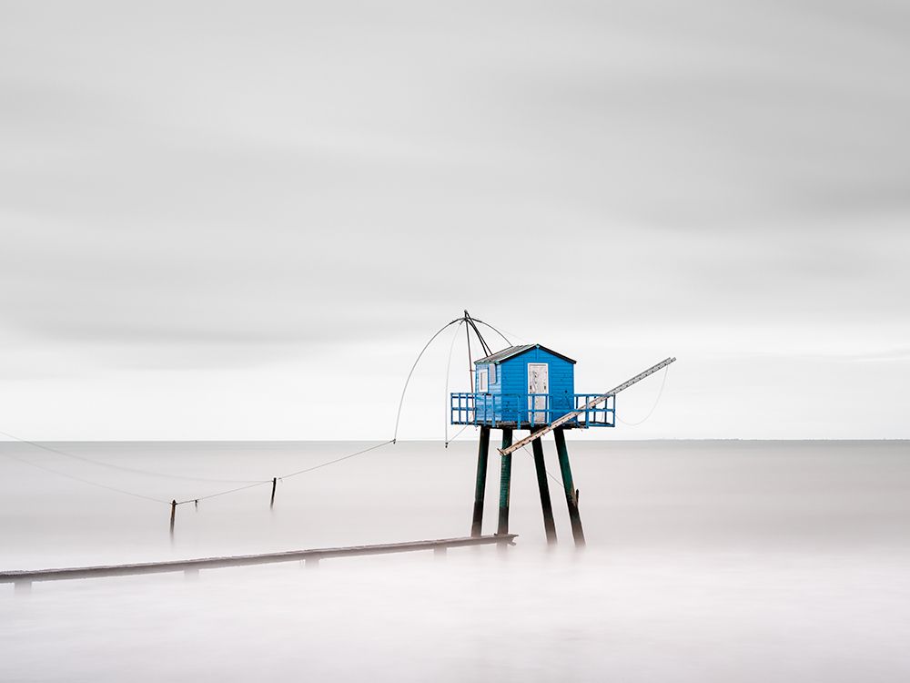 Long exposure of a unique looking fishing hut in Saint-Michel-Chef-Chef, France