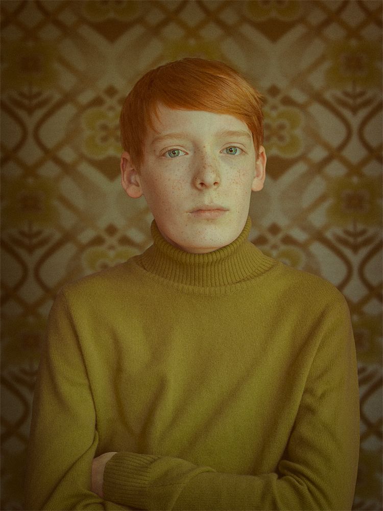 A retro inspired portrait of a boy of today, who knows the times of the 70s only from the history book. The 70s, marked by bright colors, eye-catching wallpapers, peace movement and the development of the first personal computers and video games that are the main component of everyday life for today's youth.
