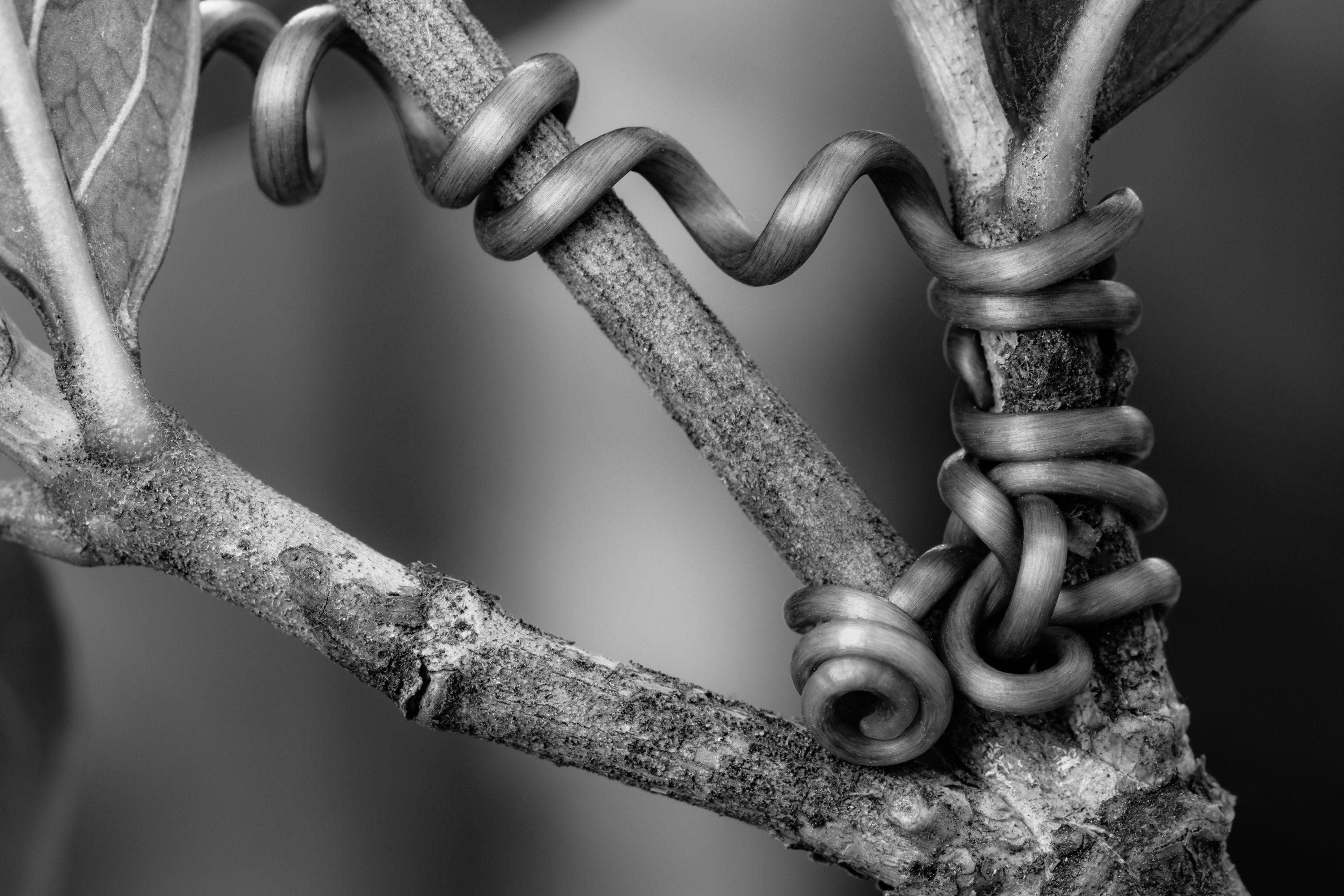 Macro photographic series that aims to explore the potential of these small springs of the climbing plants, in this case the passion fruit tree, in clinging to other plants, winding these structures and serving as support during their growth.