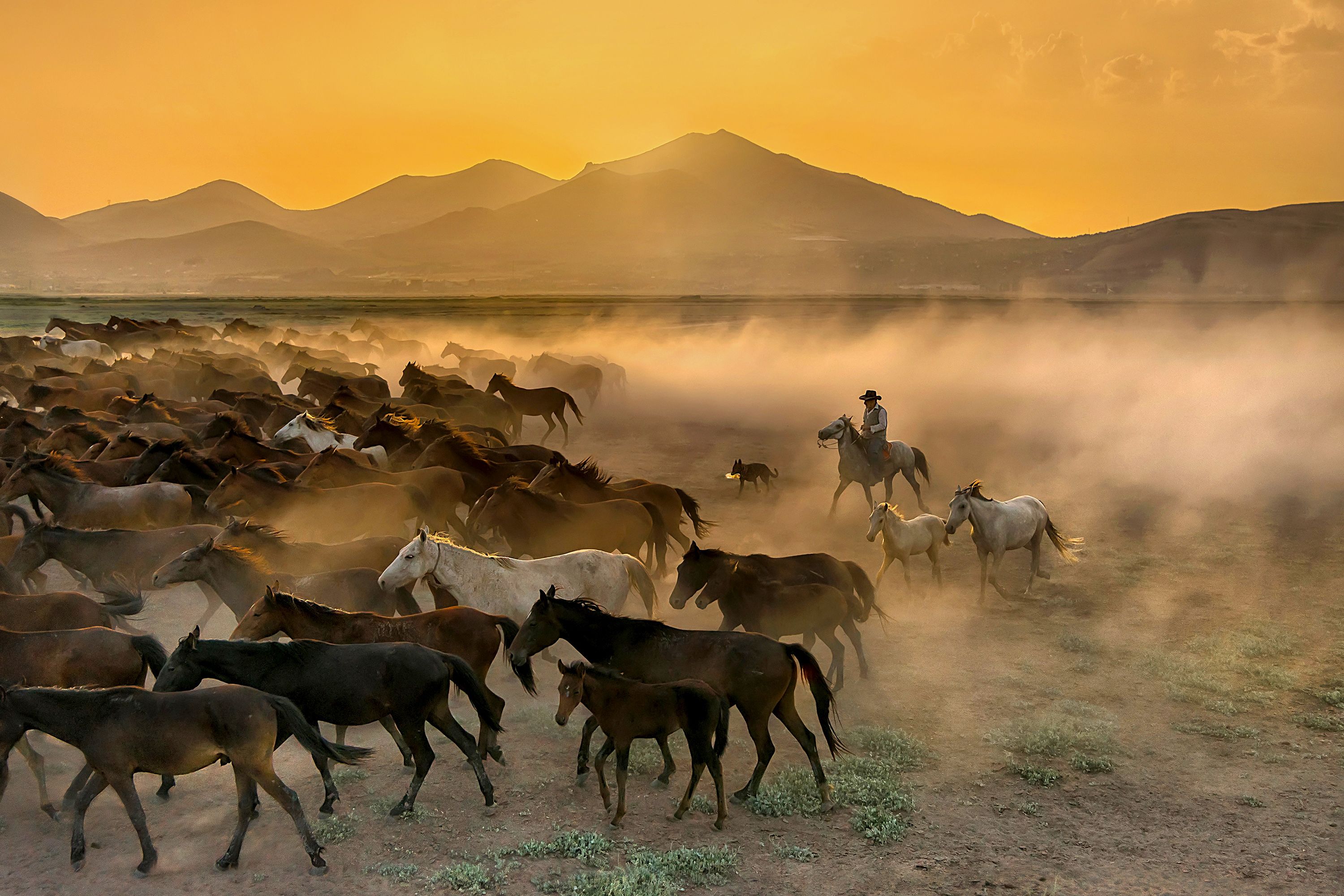 This photo was taken in a village called Hörmetçi in Kayseri,Turkey. In the village there are people who take care of these wild horses and their needs. These horses often used for riding purposes by men of village. this photo was taken when the man trying to catch a horse to sell.