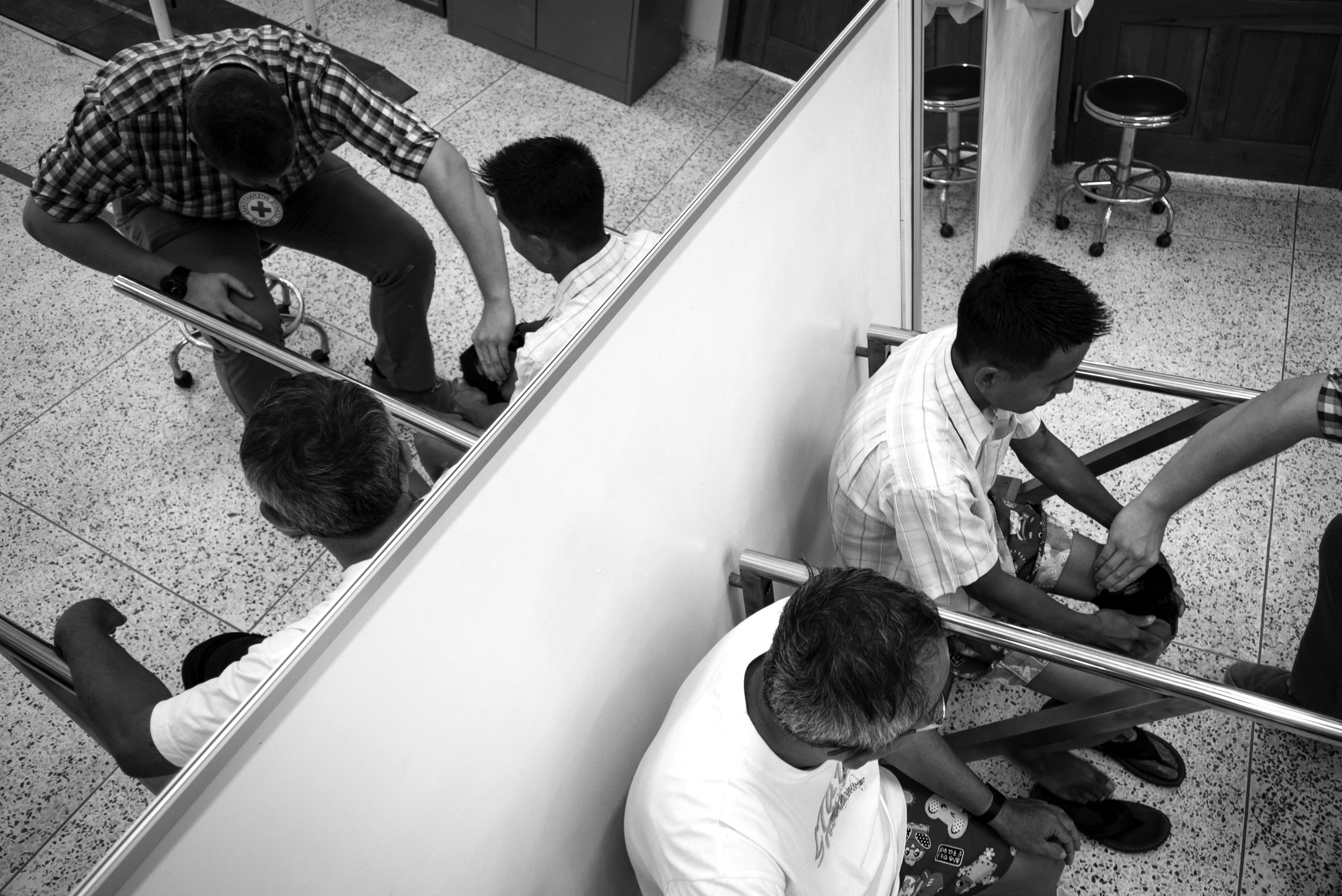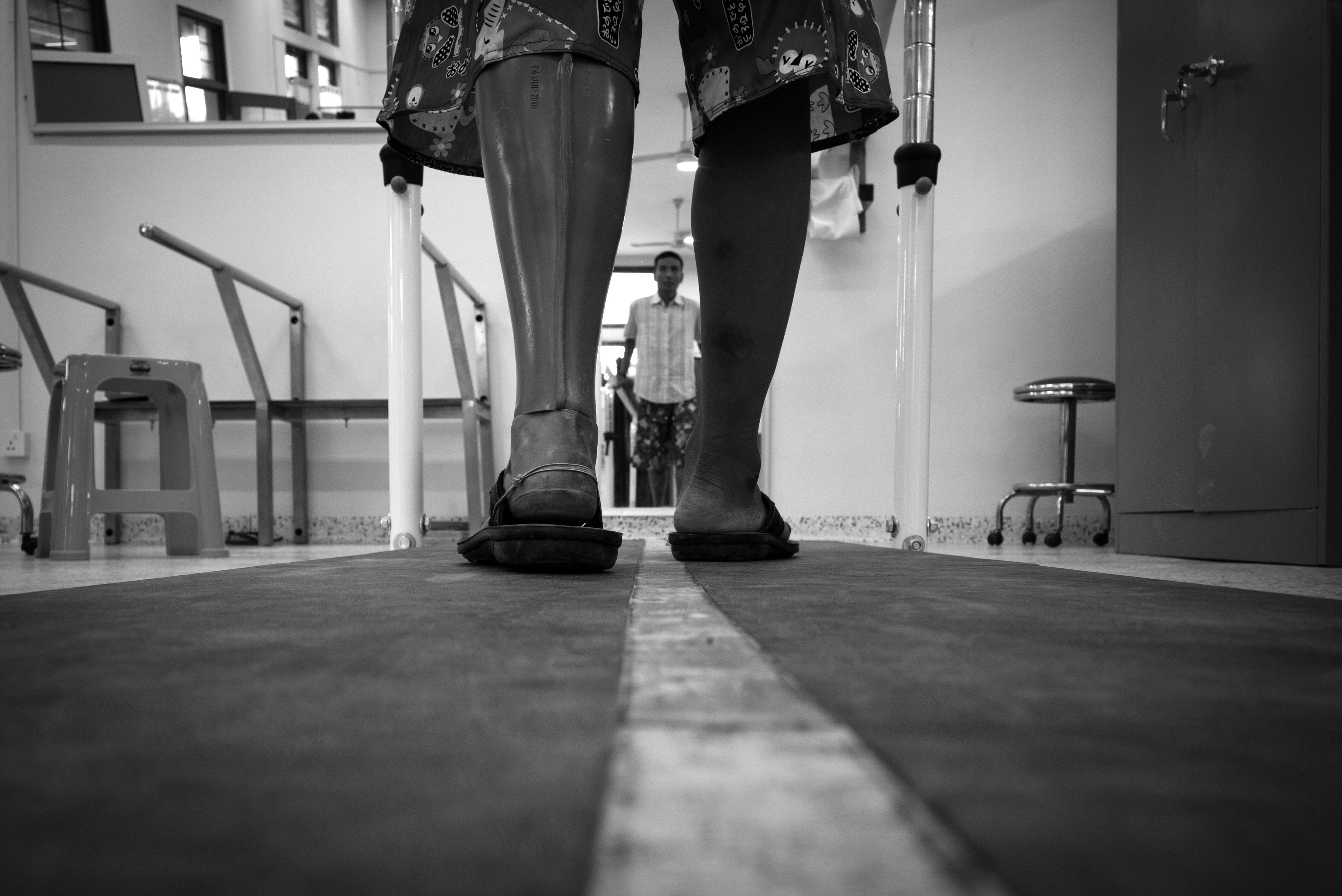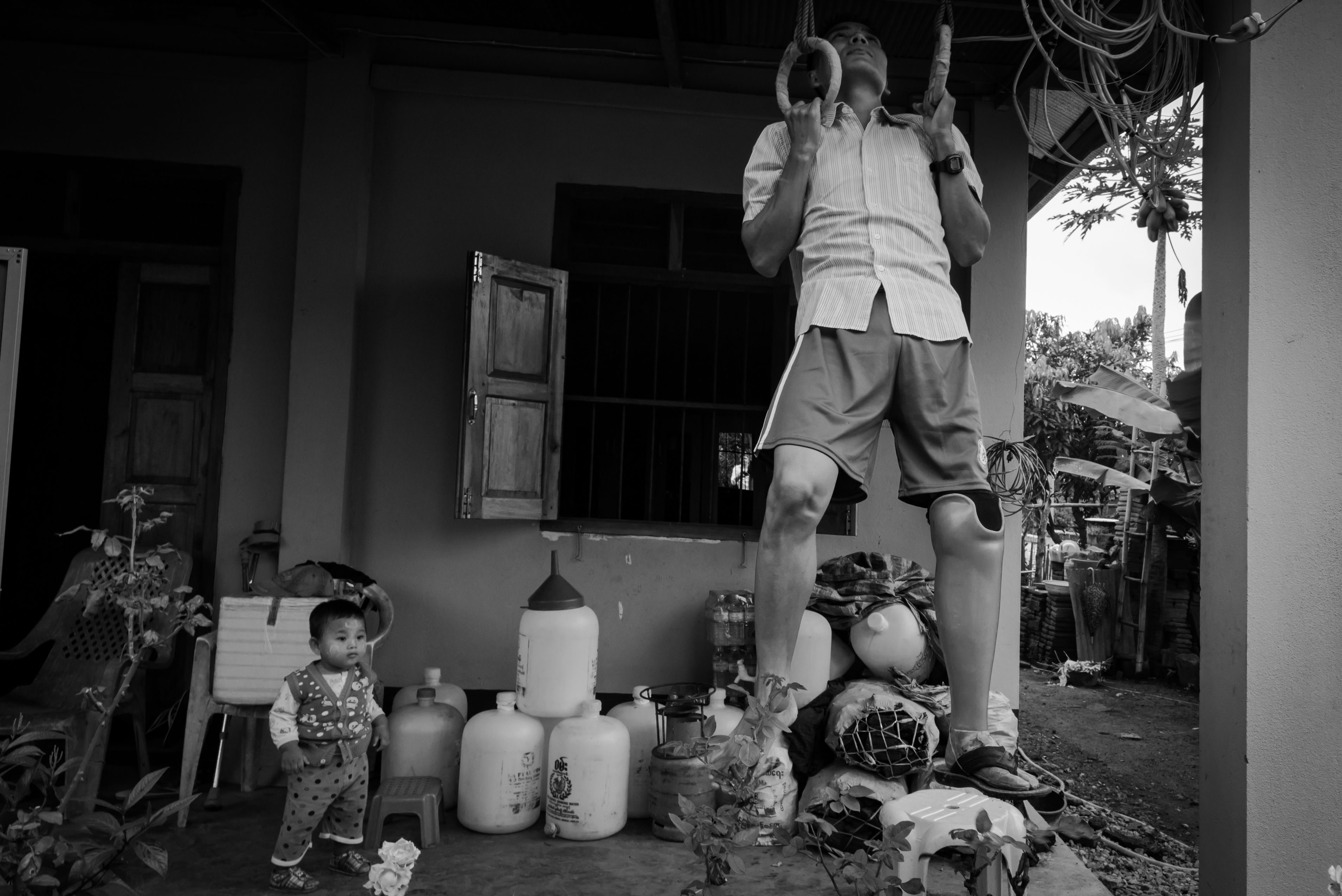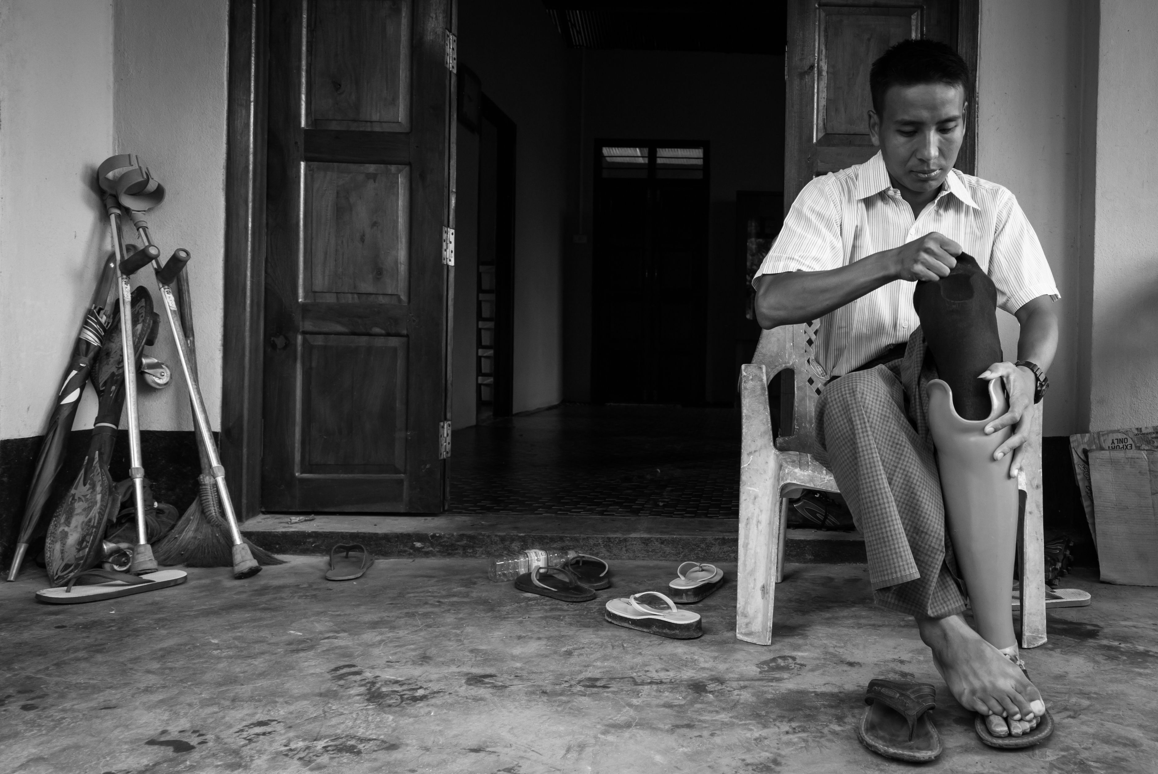 ''All of a sudden, I noticed I'm jumping of the ground and floating in the air. In the beginning I did not feel physical pain but rather the shock and a giant bubble in absolute silence.I thought I was cut of from the reality as everything went numb''. Once a soldier and now a mobile phone technician and the father of two years old daughter. Nyi Myo is 31 years old who lost his left leg when he stepped on a landmine during a conflict in the eastern part of Myanmar. Landmines still wound and kill indiscriminately, posing a severe danger to human being even decades after the conflict has ended.