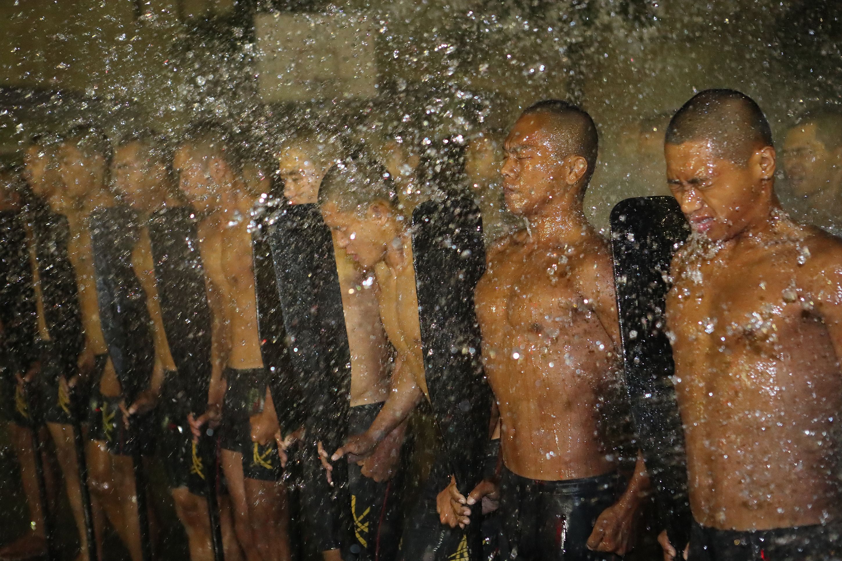 The photo focuses on the training process of the Marine Corps Amphibious Reconnaissance and Patrol Unit during the hell week . Throughout the week, the comrades have to fight against the harsh environment, fatigue, and all other adversities.In the same time,they need to pass each of the stringent training. During the training, all comrades never waver at the sight of challenges and aimed to go beyond themselves to be true fighters.
