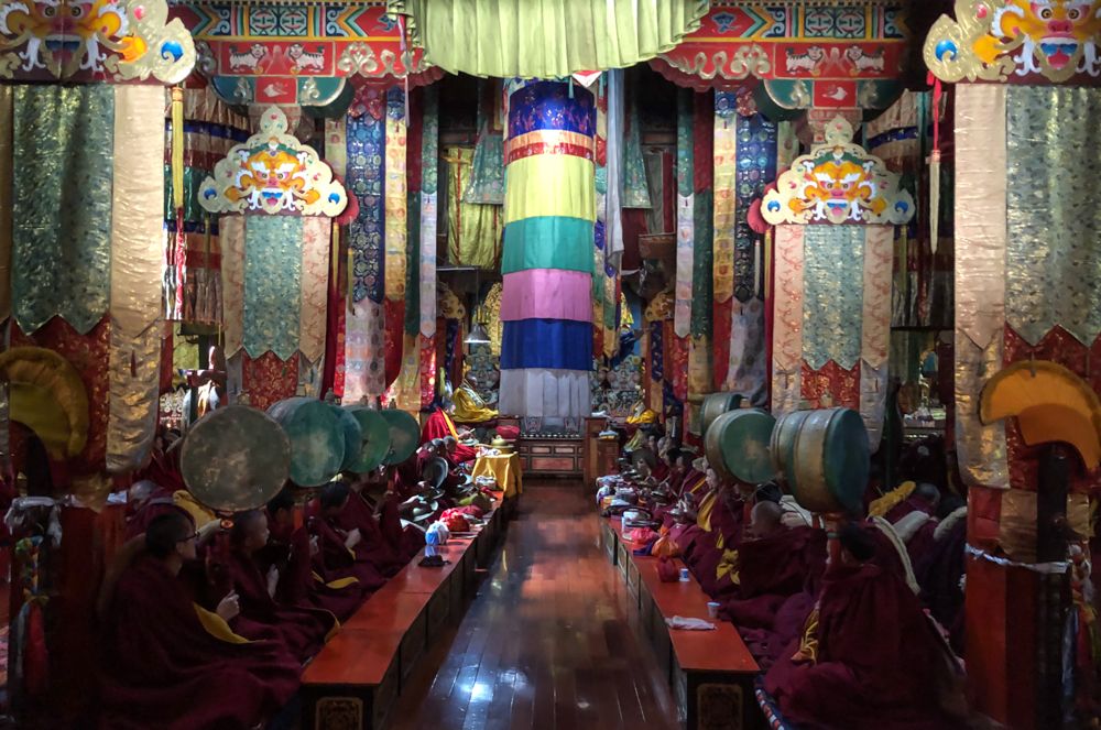 Dong Zhu Lin Monastery is an important Tibetan Buddhist monastery. It was built near Dequin in Yunan district,China. The monks pray in the great hall and study and live in other buildings of the complex.