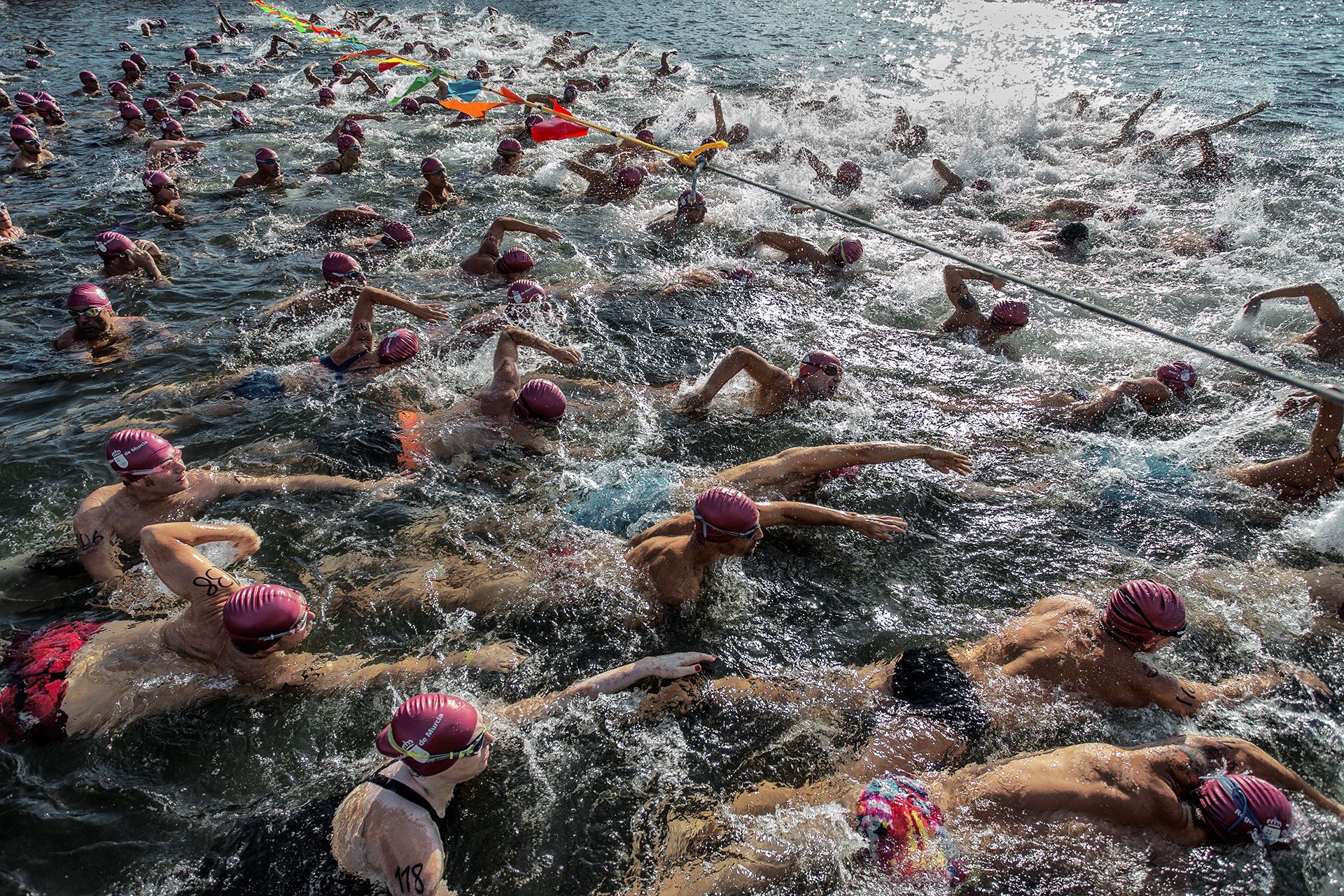 The participants in this open water swimming competition are about to swim 1,6 miles around Cape Palos in Cartagena, on the Spanish southeast.